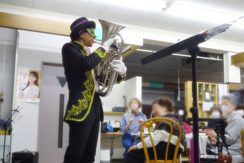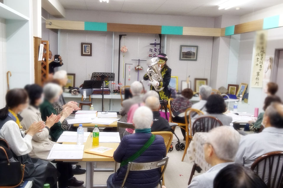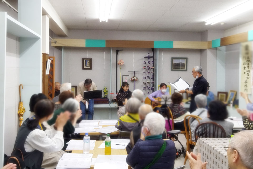 店の奥のカフェスペースで開催の 《湯沢歌声広場》