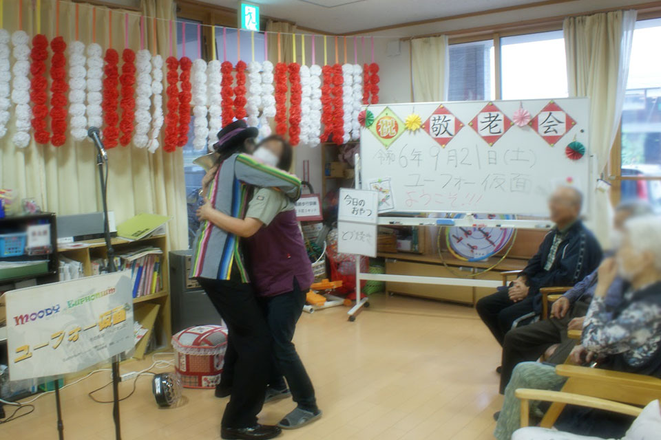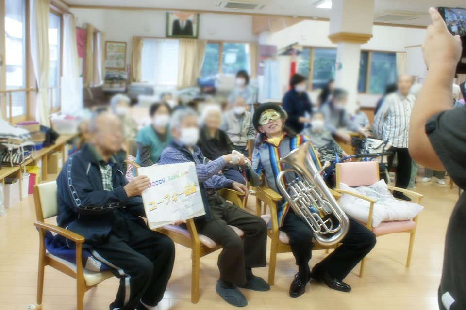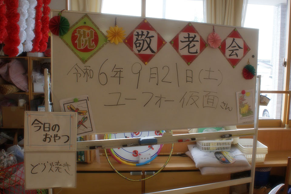 秋田県湯沢市内の高齢者施設にお邪魔しました。 こちらの施設は4年ぶりの訪問 吹き握手もたくさんやりました。 ユーフォー仮面と握手すると 10年元気に長生き! ユーフォー仮面と写真を撮ると 20年元気に長生き! ユーフォー仮面に抱きつくと 30年元気に長生き! 今日のおやつ「どらやき」 が気になります...