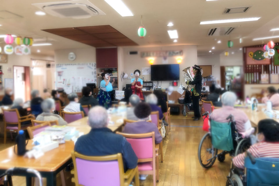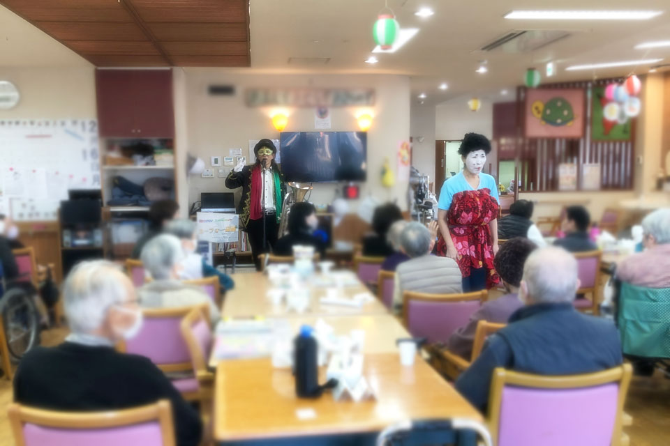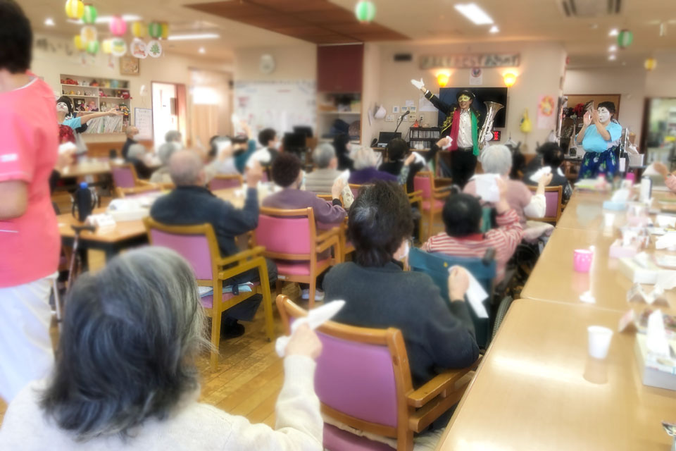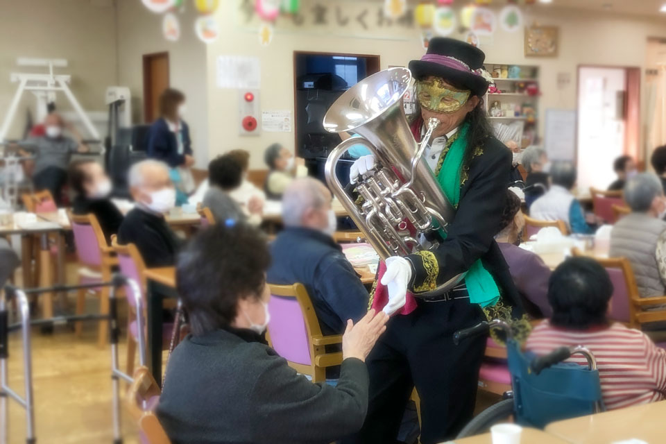 八街市内の高齢者施設 忘年会のアトラクションにお声かけいただきました。 いつもありがとうございます!! 今回も《巨乳シスターズ》さんが 盛り上げてくださいましたよ。(*^▽^*) テレサ・テンの曲目... マイクを奪われますた...💦 しかたなく、テキトーなオブリガードを吹いているところ もちろん「吹き握手」もやります。 利用者さん全員と握手しました。 撮影会も(笑) 細かいことは気にしません。 (≧▽≦)