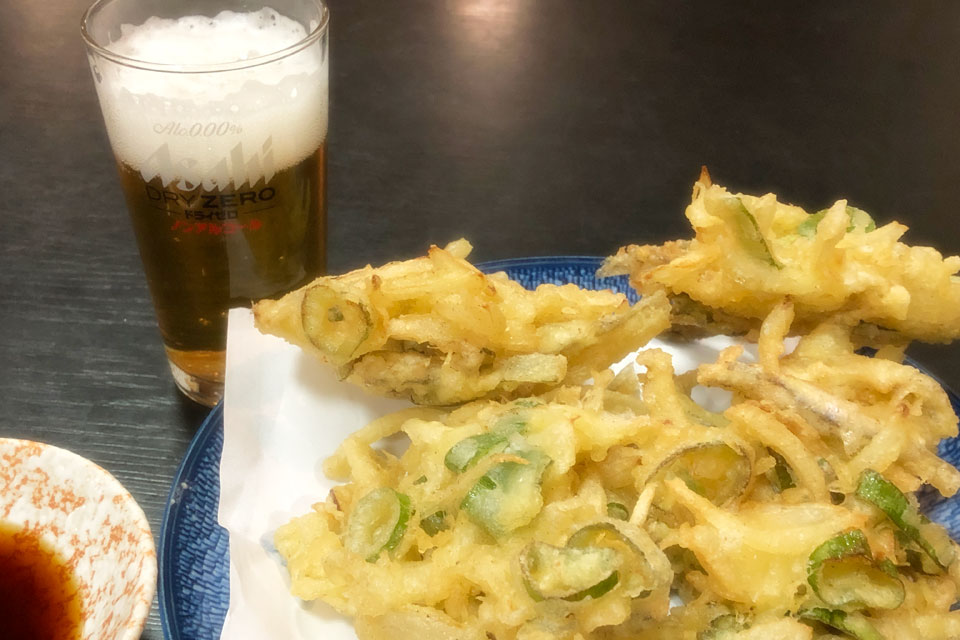 《ジャミ(小いわし)のかきあげ》 《ノンアルビール》