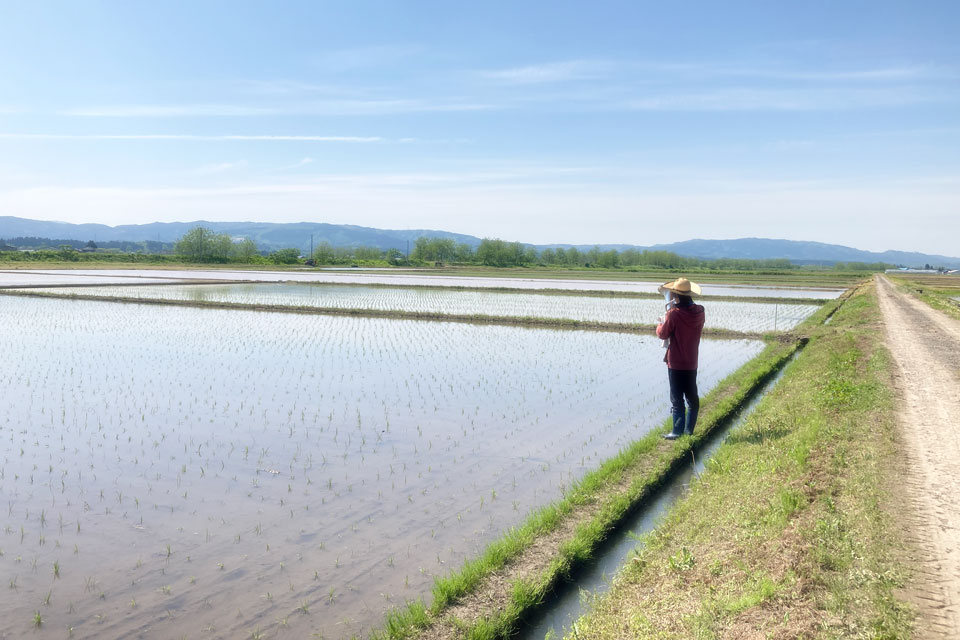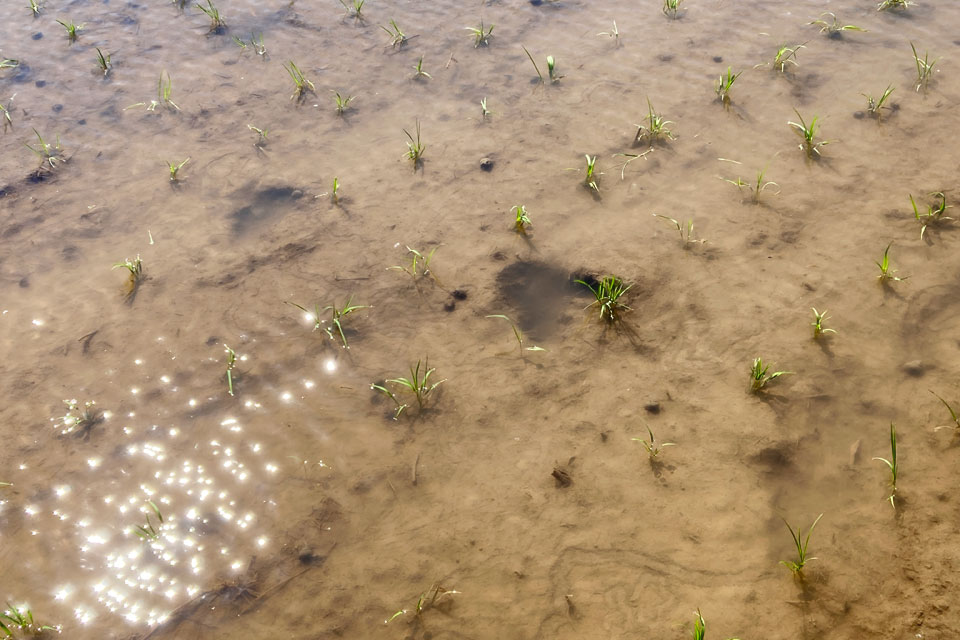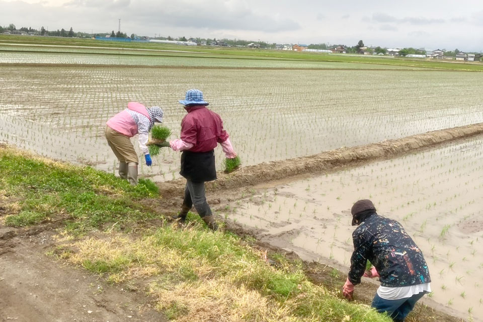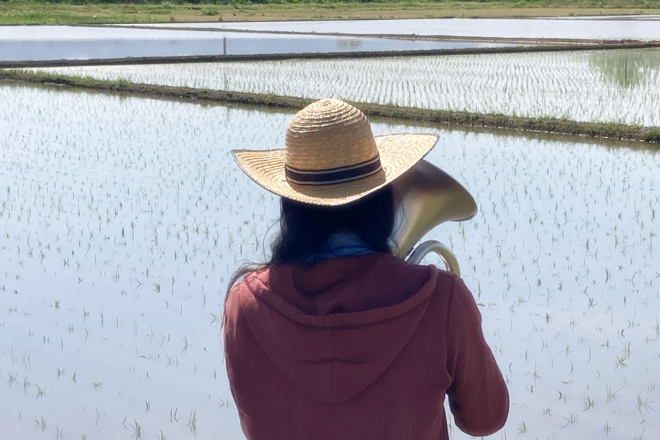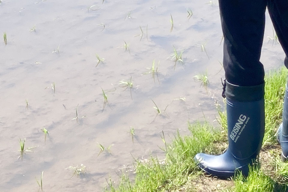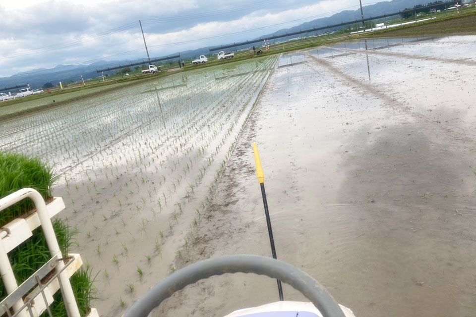 田植え & 音の肥料作戦 を行いました。 田植え機からの視点 機械でうまく植えられなかったところは、手作業で補植します。 圃場に入った足跡がナイス! (≧▽≦) 仕上げは ユーフォー仮面の《音の肥料》 これから何度も顔出ししますよ。 おつかれさまでした。
