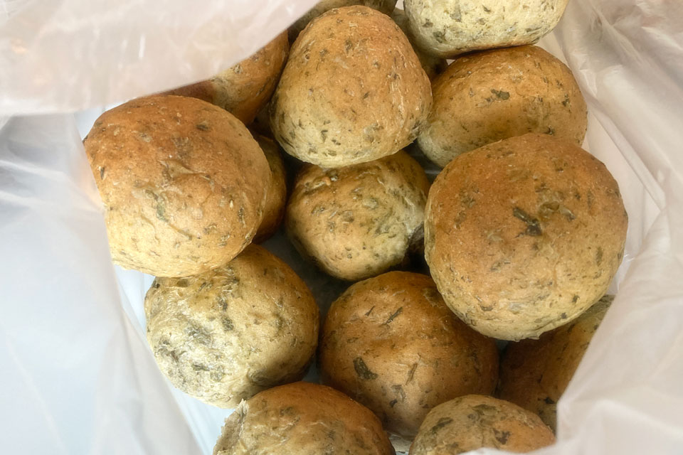 一見「じゃがいも???」 バジルたっぷりのパンです。