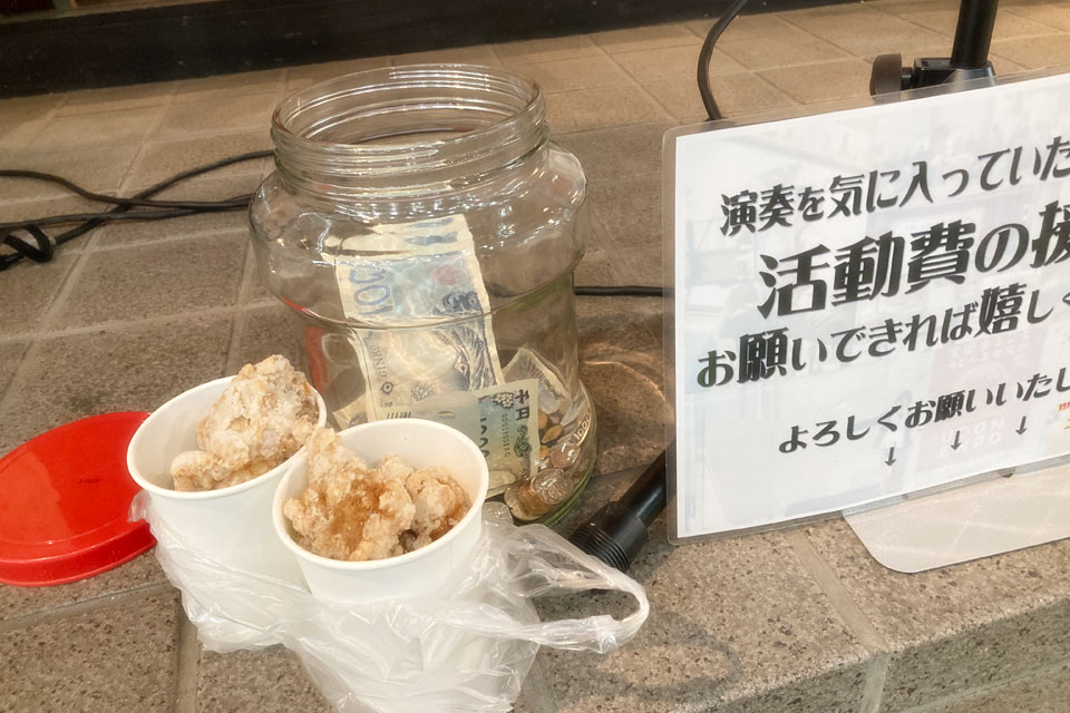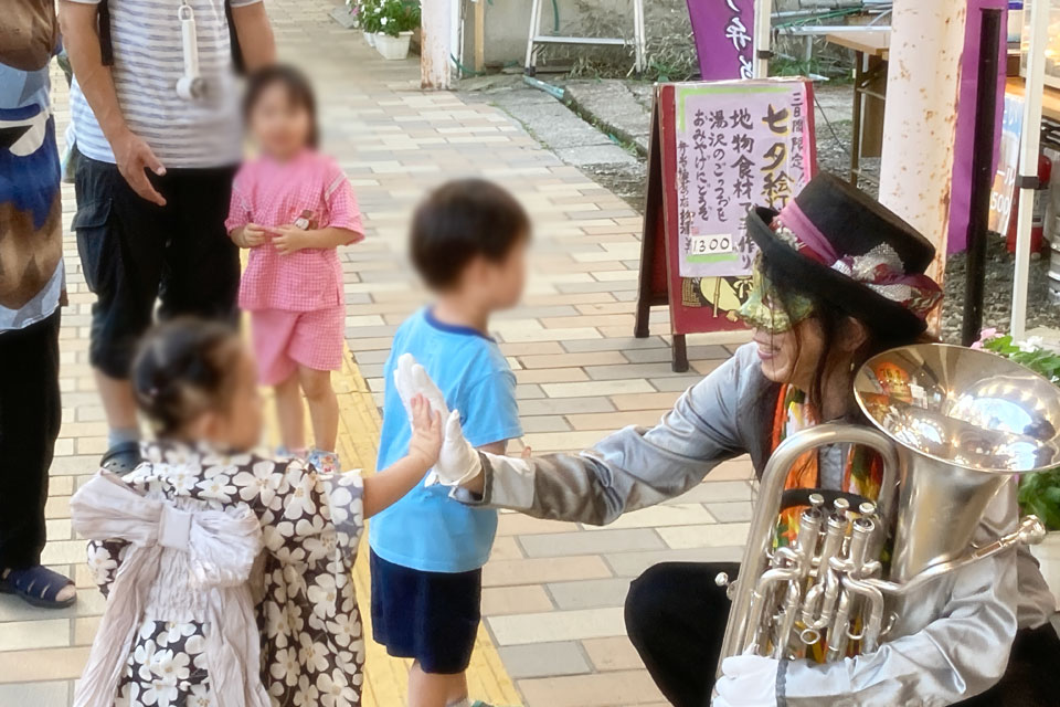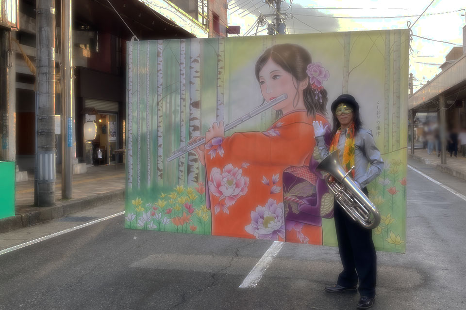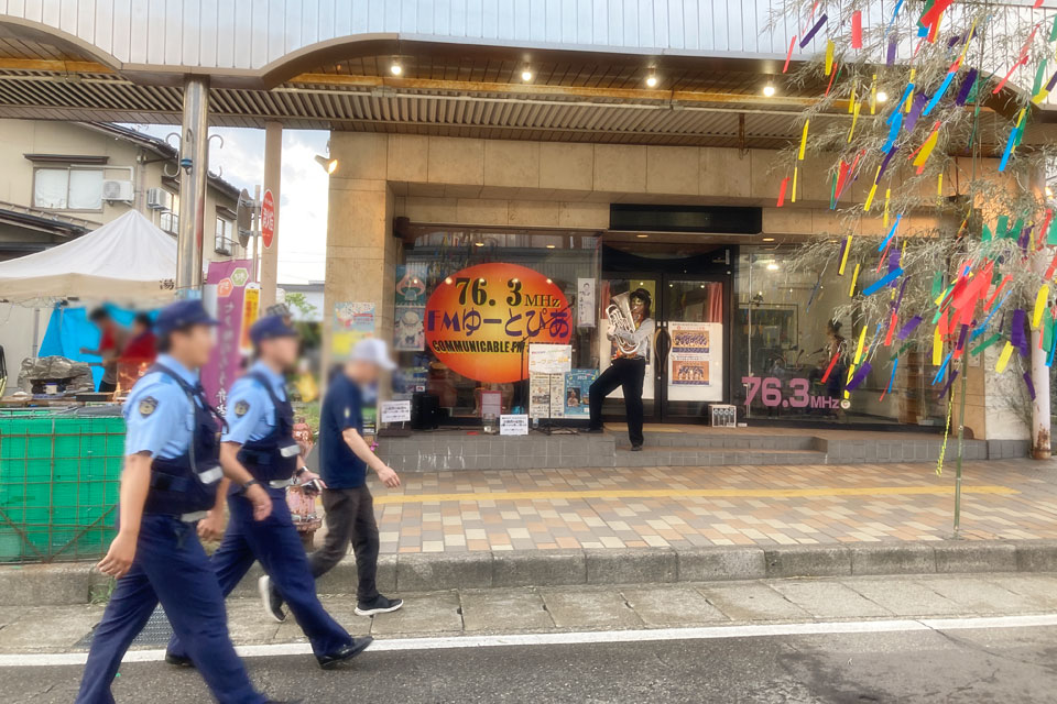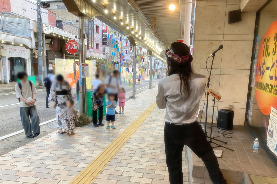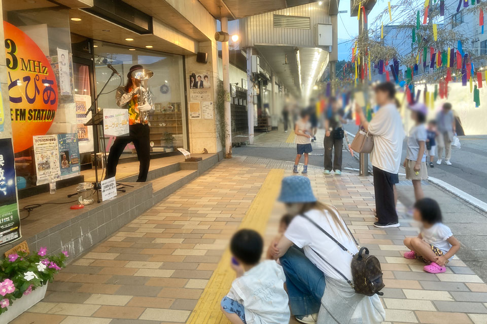湯沢市の「七夕絵灯篭まつり」最終日 「FMゆーとぴあ」さん前をお借りして サプライズライブ開催 お隣のお店にも挨拶して、FMでちょっと宣伝してからスタート! お客様は集まったり散ったり... たくさんの人が足を止めて聴いていってくださいました。 ありがとうございます! ちびっ子ちゃんも飛び入り参加!! お巡りさんが通ってちょっとドキドキ(笑) 美人フルートの灯籠もあります。 おひねり & 差し入れ ありがとうございます!!