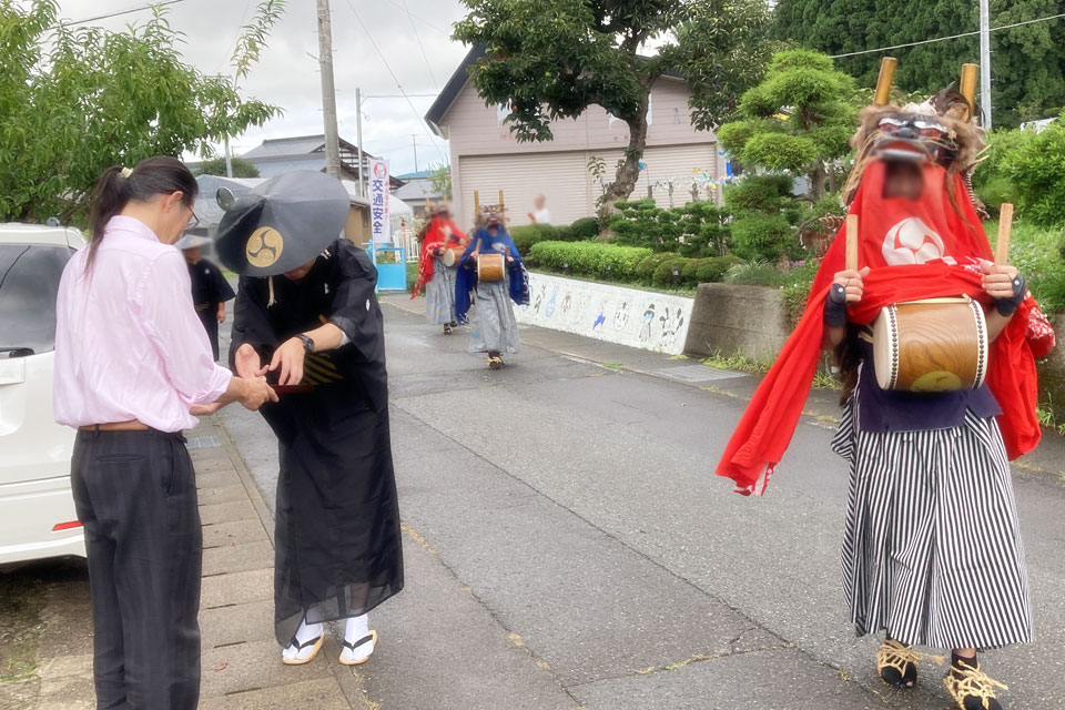 地域の郷土芸能《ささら舞》が地域をまわります。