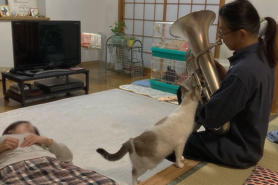 ウサギちゃんにご飯をあげるマネジャー氏(笑)