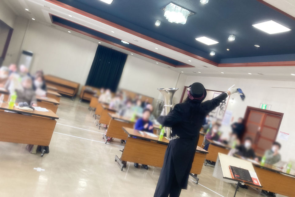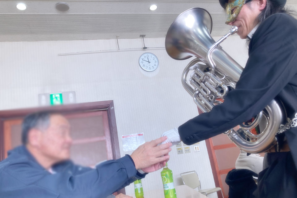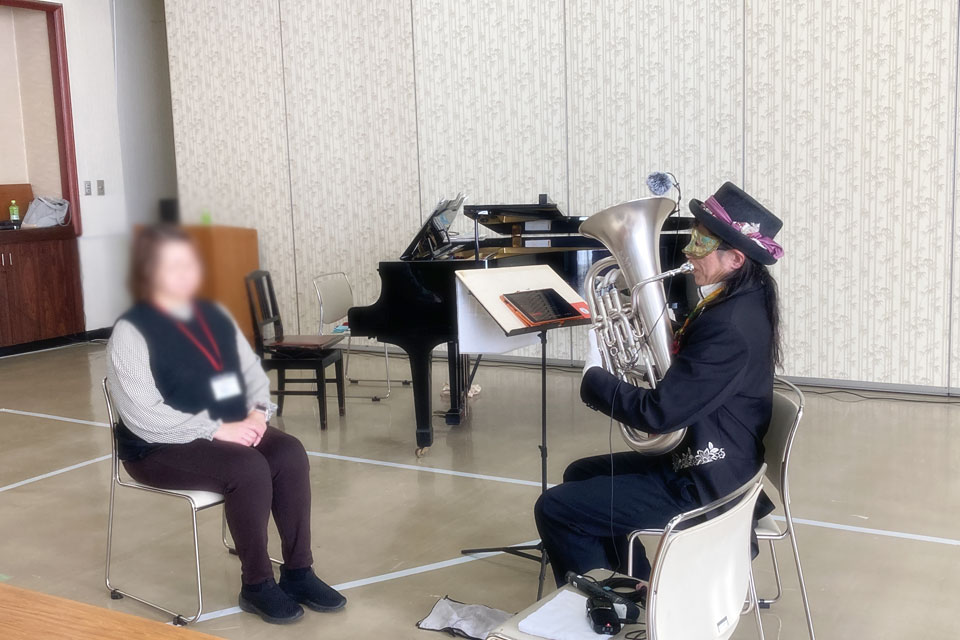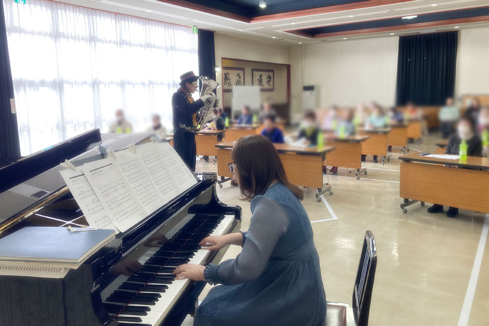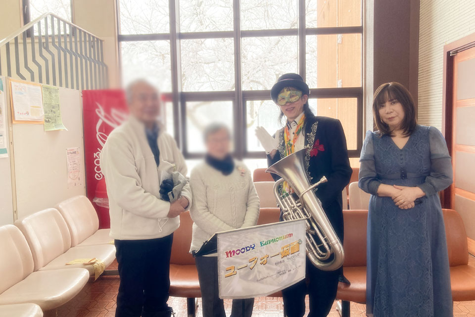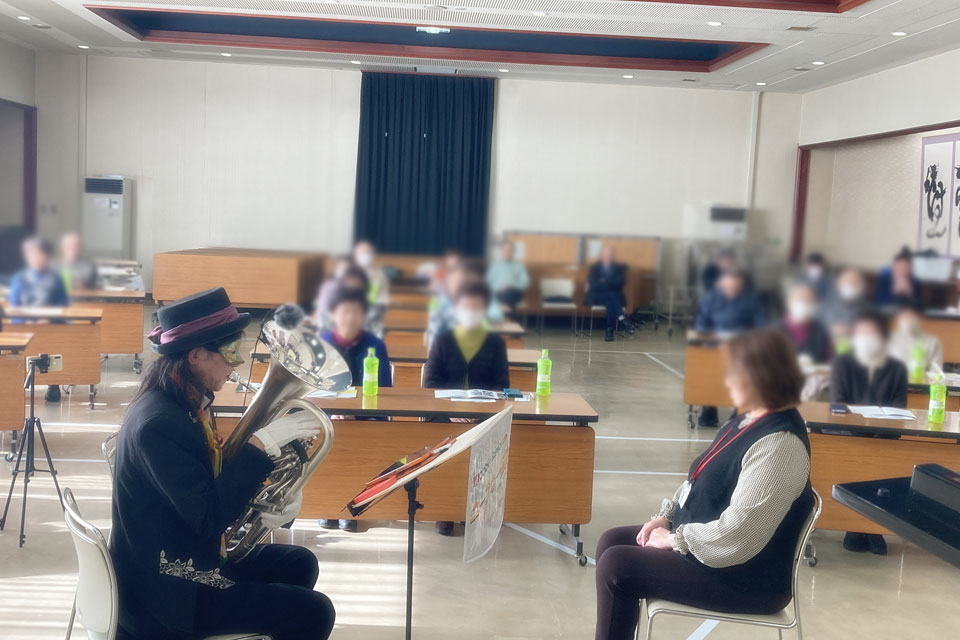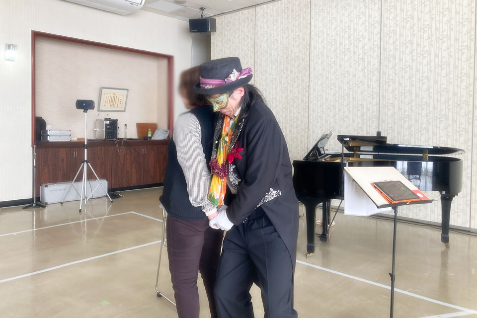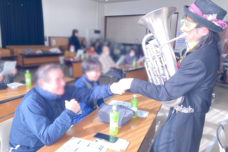 横手市《増田地区多目的研修センター》で開催 《ふれあい学級》 新年会アトラクションにお声かけいただきました。 ピアニスト「ゆきのん」と一緒に いろんな曲目を演奏しました。 《オトダマヒーリング》も皆さんに体験いただきました。 モデル被験者さんを通じて、みんなにエネルギーが行きわたります。 モデル被験者さん 《オトダマヒーリング》で確実に体幹が整いました! 恒例の「握手まつり」、「ハンケチ振り」もやります。 お客さまと記念撮影 ありがとうございます。