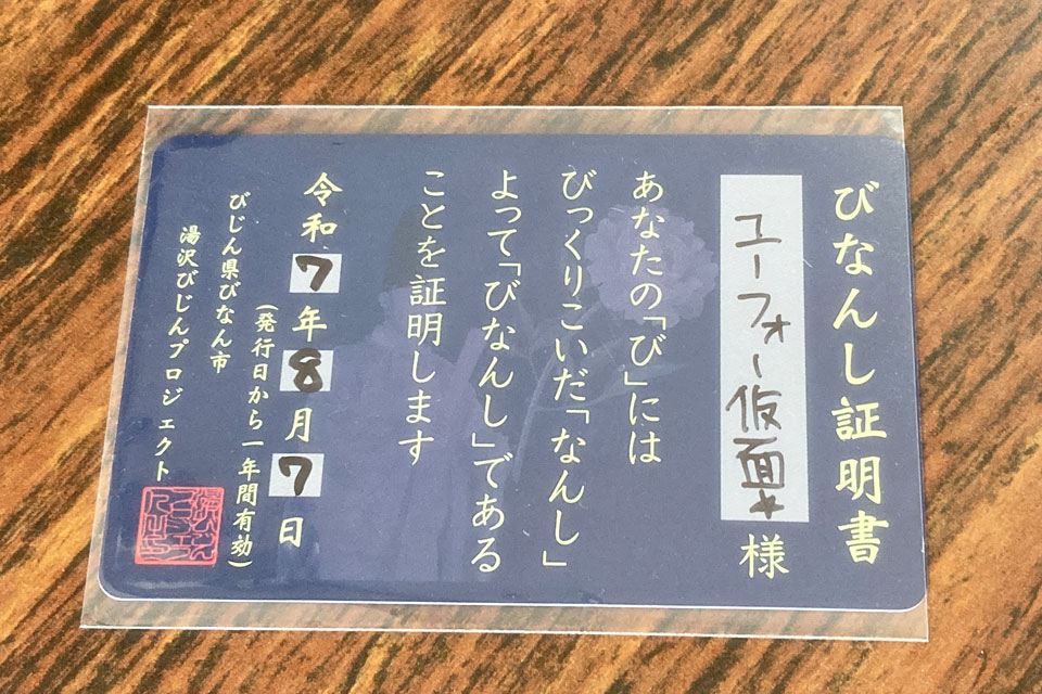 事業のひとつ「びじん証明書」「びなんし証明書」
