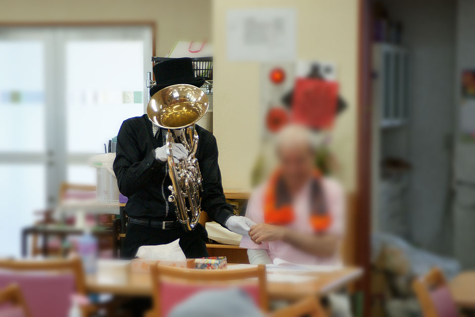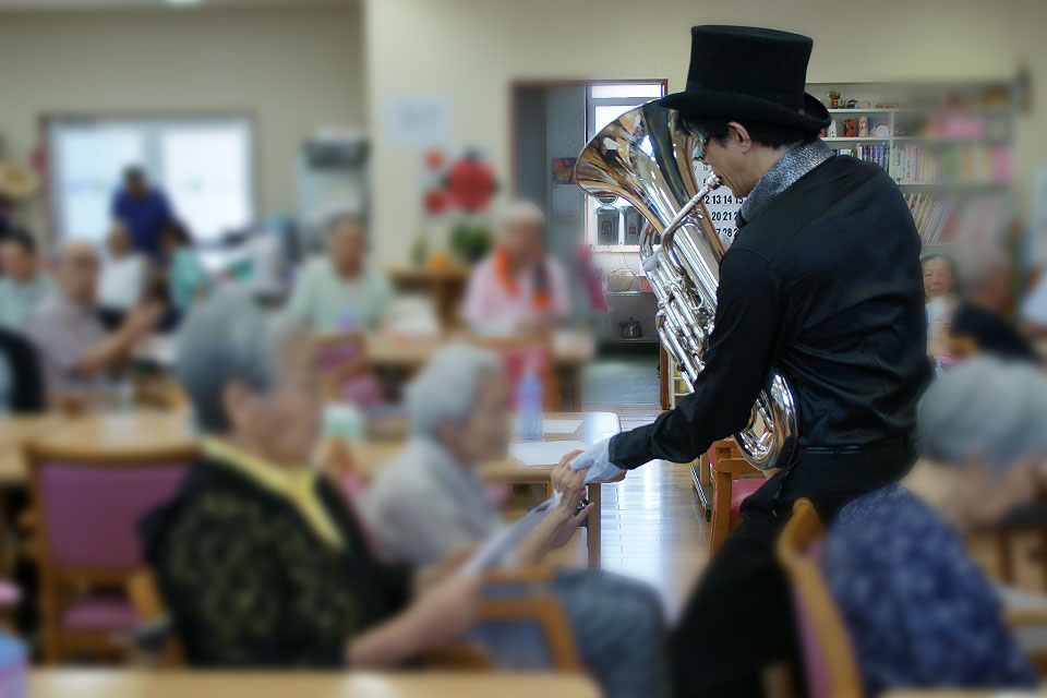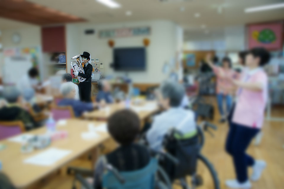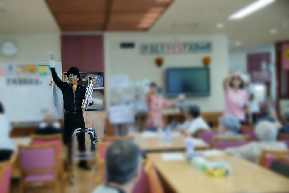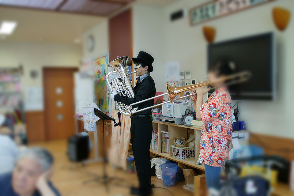 施設スタッフのお姐さんも吹いてくれたり、踊ってくれたり