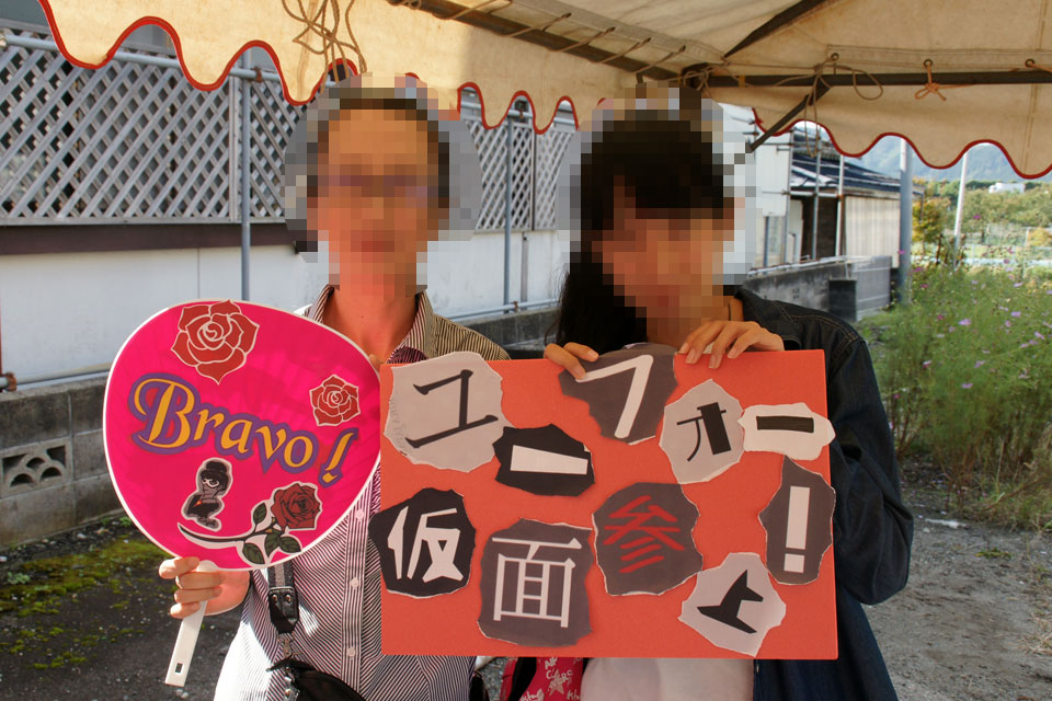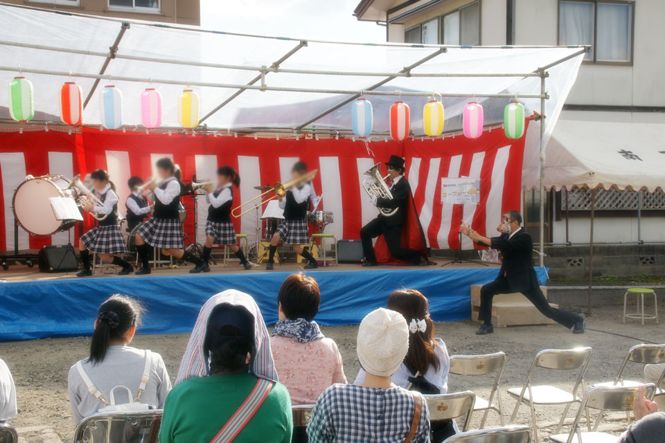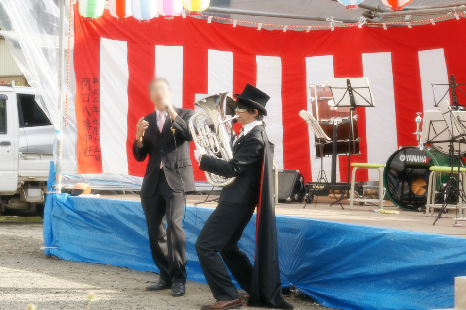 2016.10.15(土) 三関「ゆめ蔵ぶ」10周年記念 収穫感謝祭 こんな立派な特設ステージを作っていただきました!! ハンケチを振っています。。。 地元の小学校スクールバンドとコラボ演奏 「シング・シング・シング」踊り吹き & 顧問先生とデュオ「あずさ2号」 たくさんのお客様、ありがとうございました。 そして、ユーフォー仮面にも「追っかけ隊」ができた模様です。(笑) ありがとうございます。 (*^▽^*)