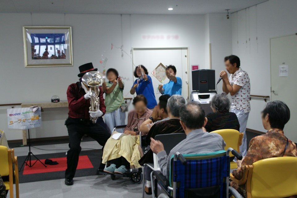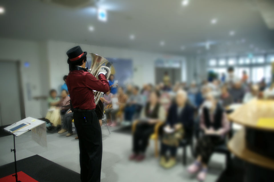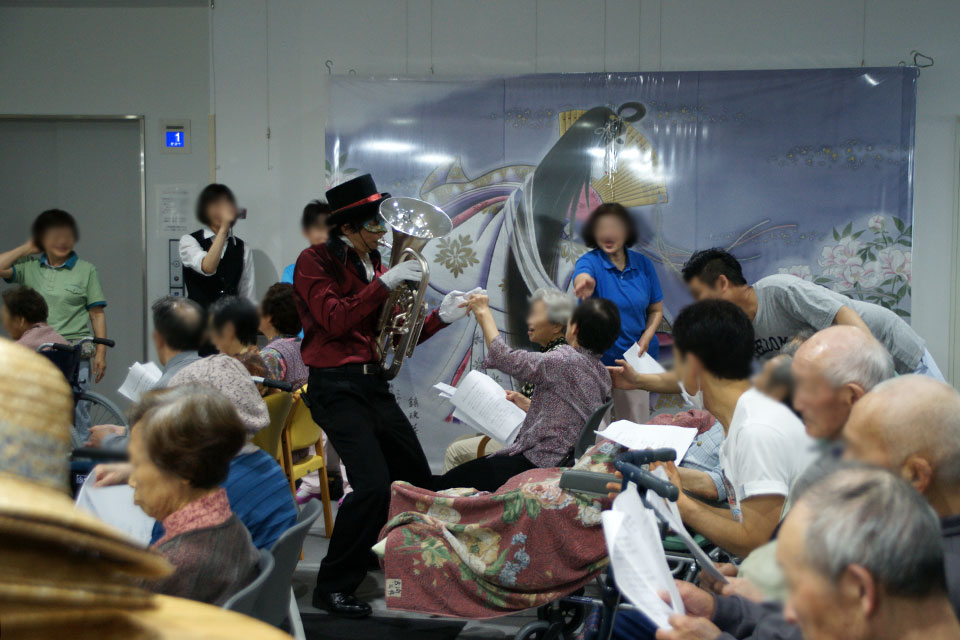 演奏後、利用者さんにサインを求められ...