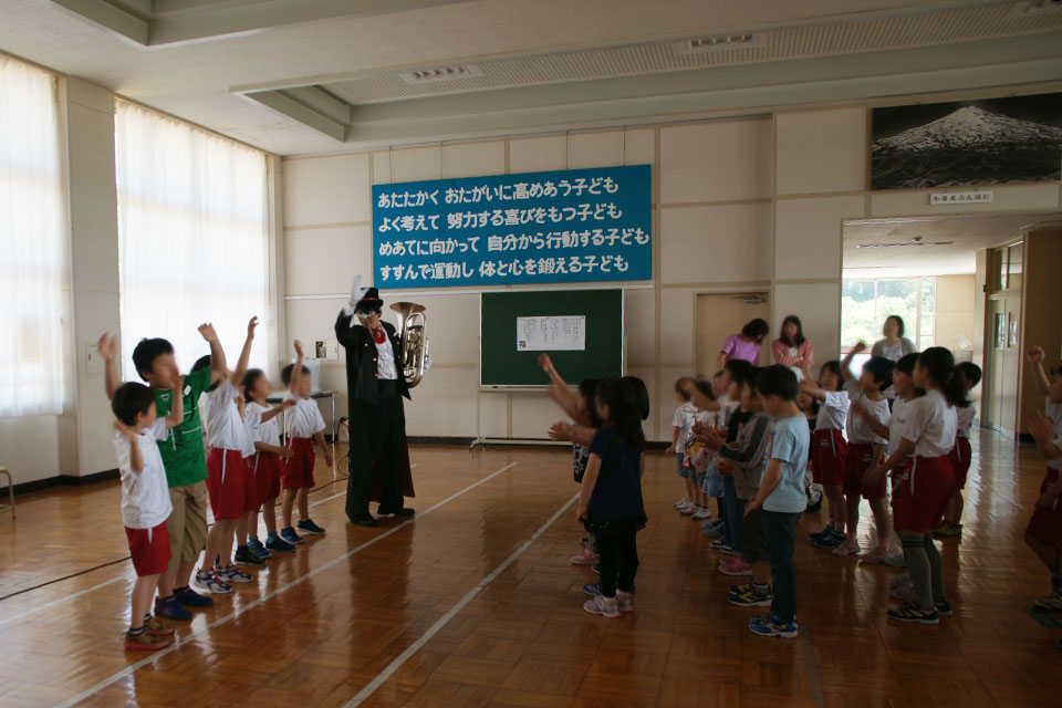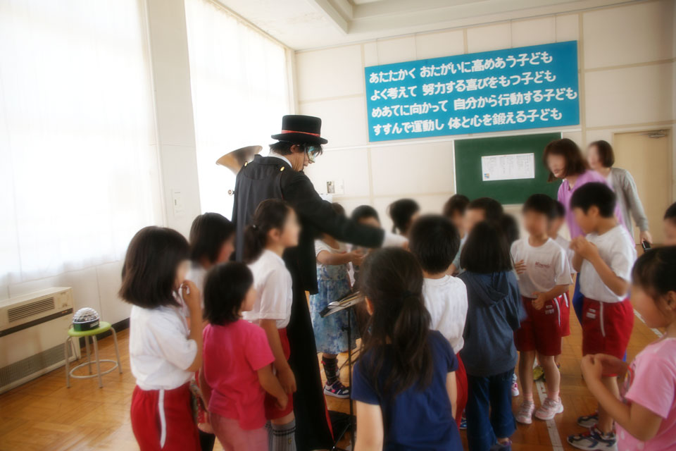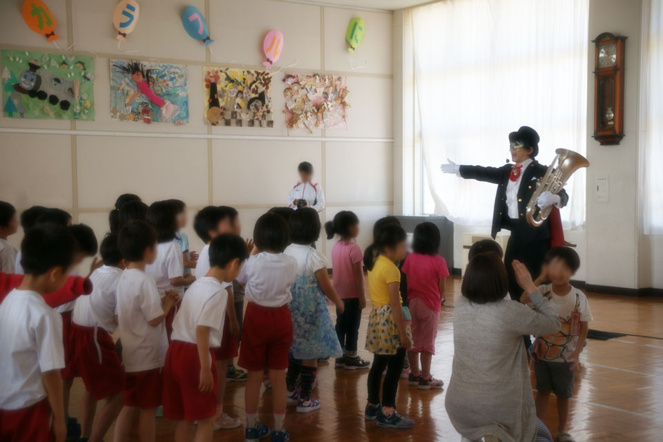 子どもたちと一緒に演奏して、踊って... がんばってます!(笑)
