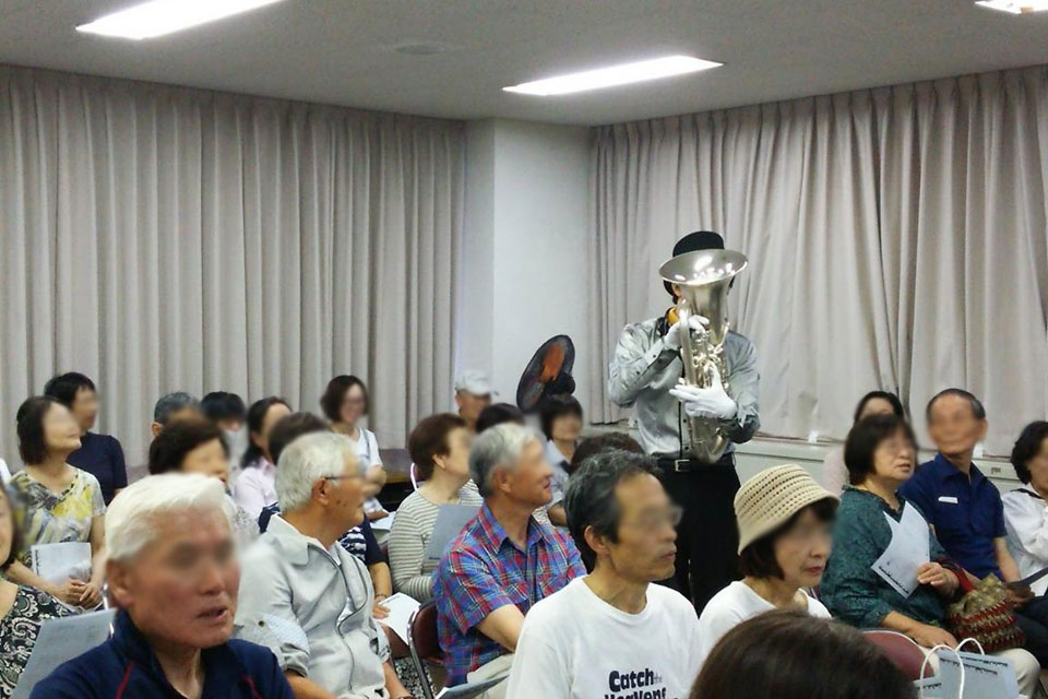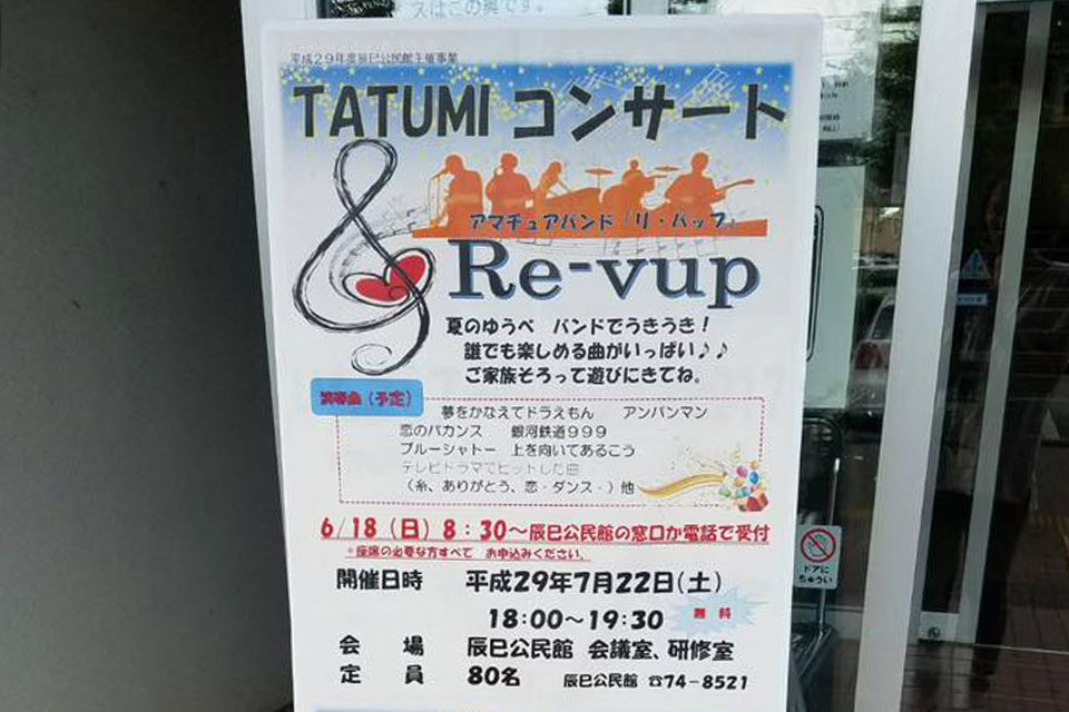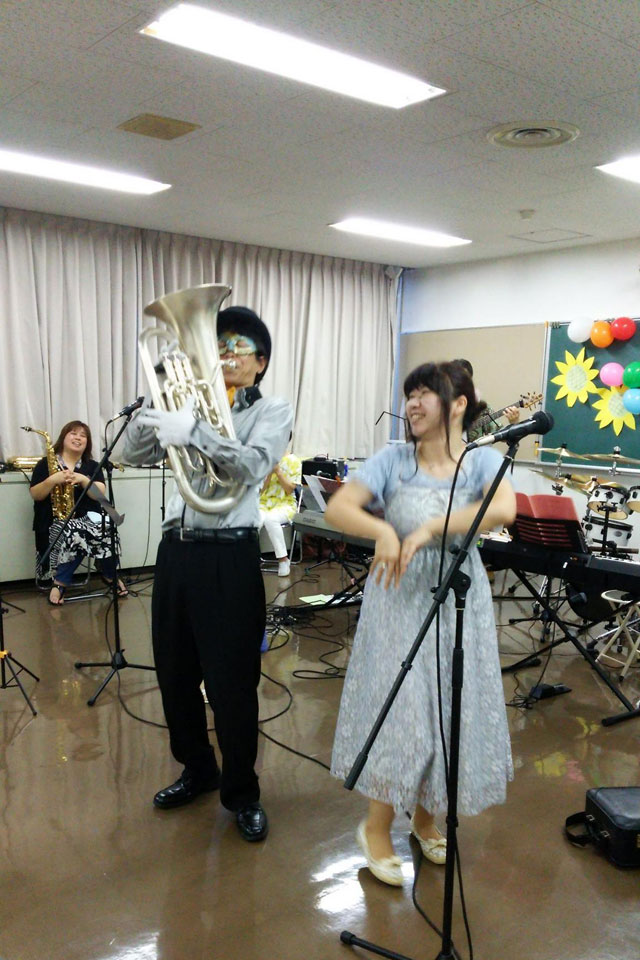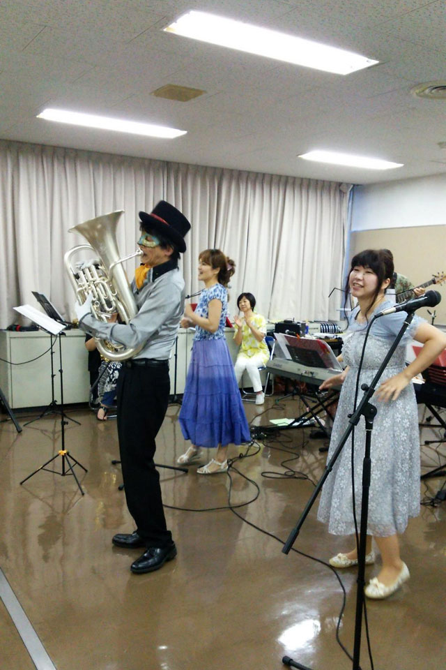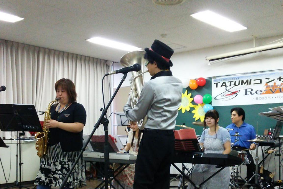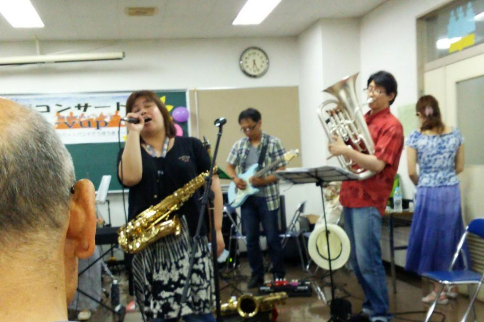 市原市の辰巳公民館で開催の「辰巳コンサート」 いつもお世話になっているRe-vup(リバップ)さんのゲストとして参加しました。 赤い服の人はマネージャー氏 Re-vupをバックに、ソロのほかサックスの姐さんとのデュオも披露しました!! 豪華バックダンサー付き!!! ピンクレディ『渚のシンドバッド』を踊っています。 ♪セクスィ~♪
