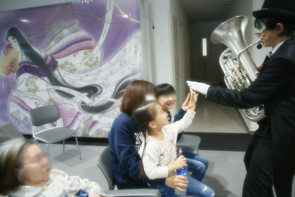 ユーフォー仮面と握手で 「10年元気に長生き!」