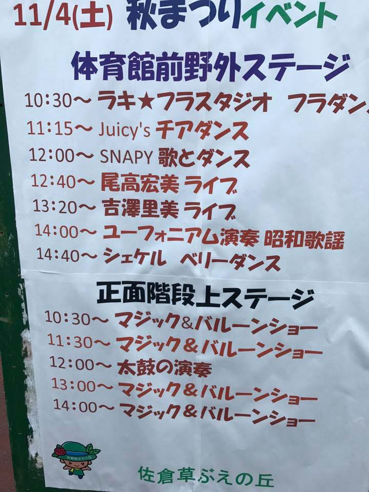 11/3(金)~11/5(日)、3日間開催された「秋祭り」 ユーフォー仮面は、11/4(土)のステージイベントに参加しました。 会場のちびっ子たちと一緒に演奏したシーンもあったのですが、残念ながら写真なし... 写真がないので、WEBから画像拝借... m(__)m 出店者さんや、イベント出演者さんとも仲良くなれました。 ありがとうございました。 またお声かけくださいませ。