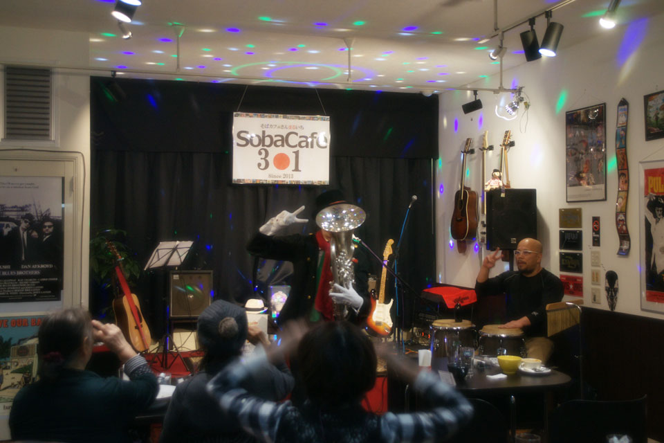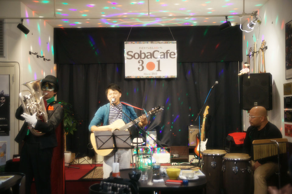 佐倉市ユーカリが丘 「そばカフェ301(さんまるいち)」さん こちらのお店では2回目のライブです。 ★ゲストプレイヤー★ パーカッション:大橋さん ギター・ヴォーカル:渡邉さん(そばカフェのマスター) ギター・ヴォーカル:清水裕治さん ありがとうございます!