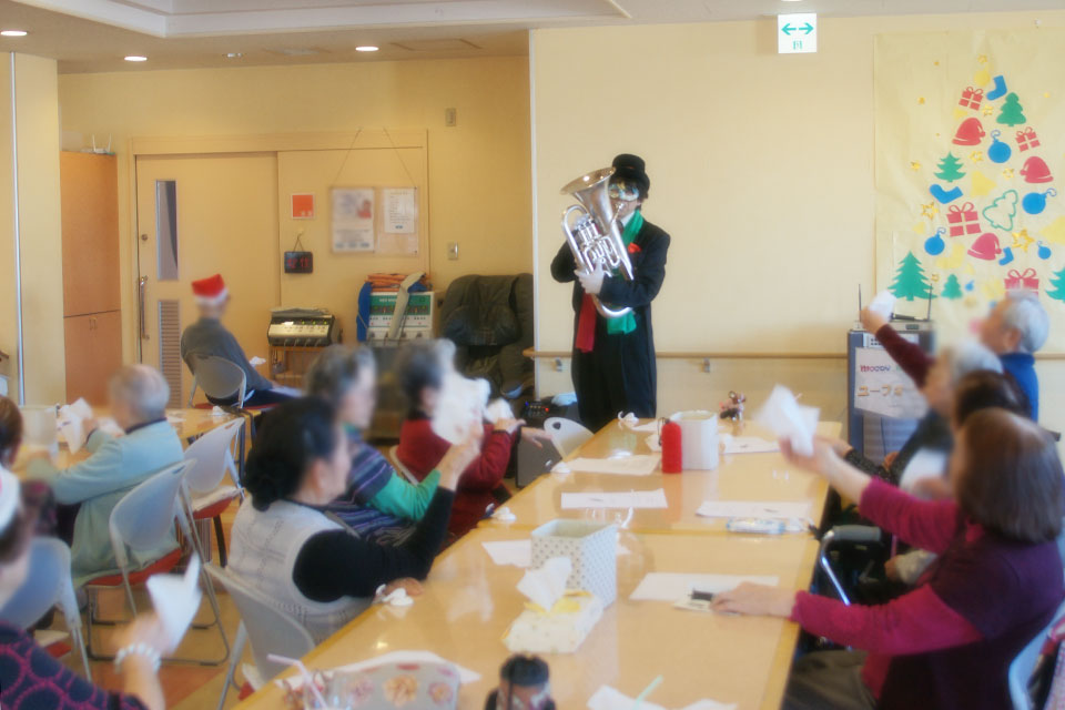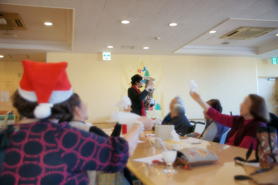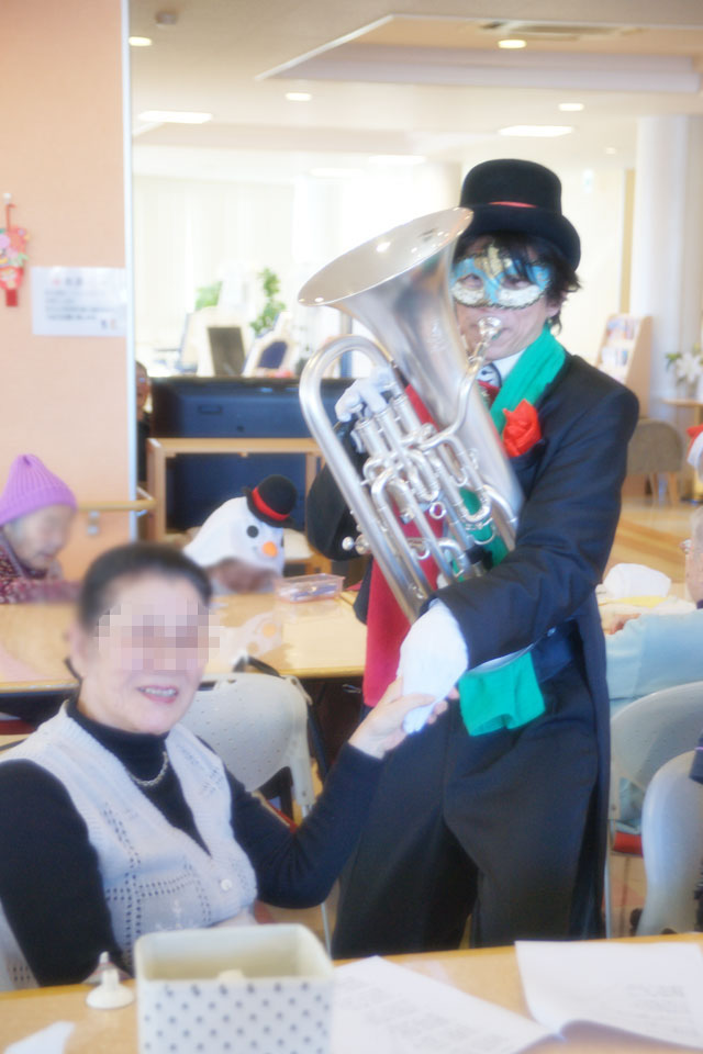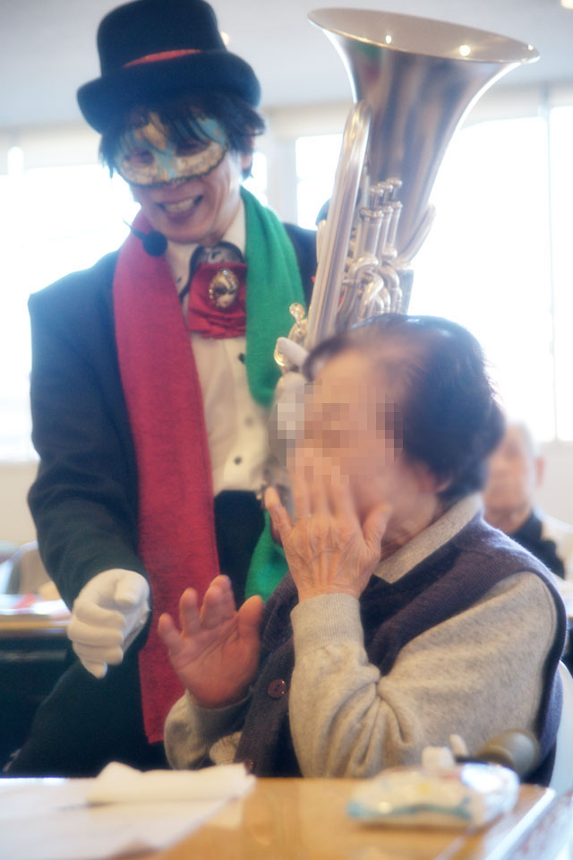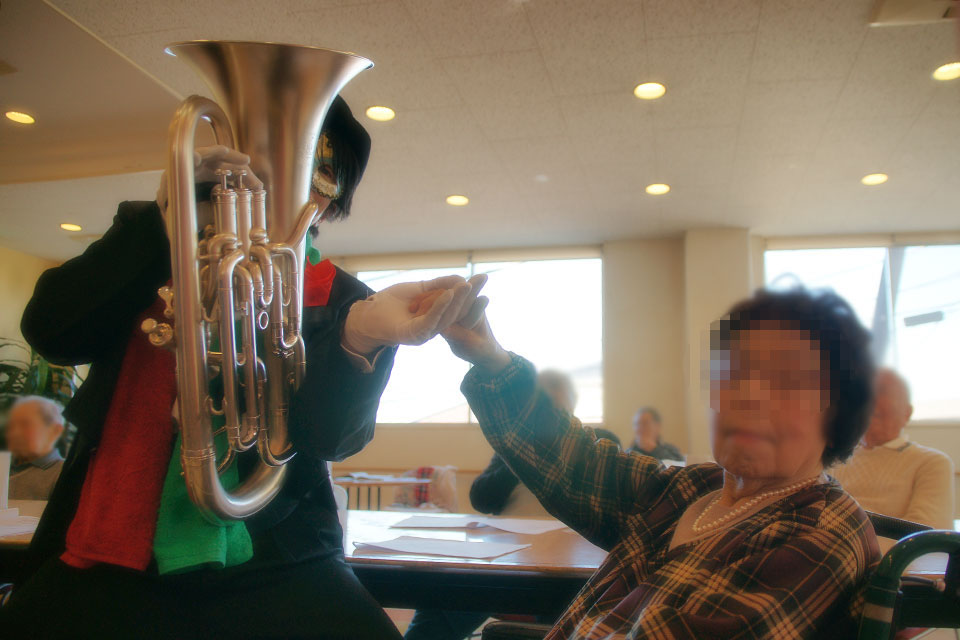 千葉市花見川区の高齢者施設にお邪魔しました。 いつもありがとうございます。 歌いながら握手する歌手さんはけっこういるけど 吹きながら握手する芸人はなかなかいませんよ。。。(笑) 恒例の「ハンケチ振り」 ご協力ありがとうございます。