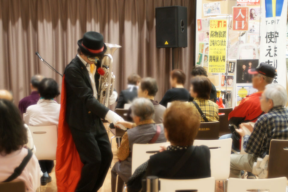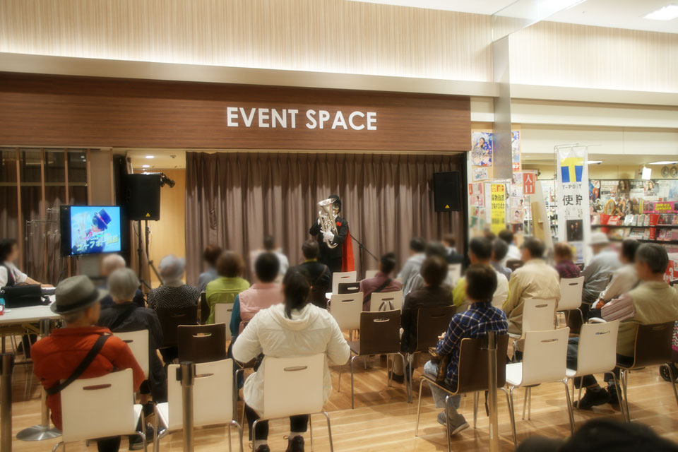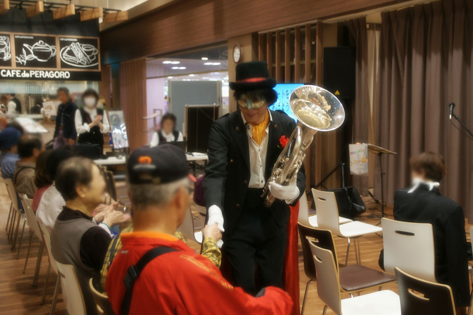 千葉市稲毛海岸 イオンマリンピア にお邪魔しました。 ここでは初めての平日開催です。 ご年配のお兄さん・お姉さんが多いかも? の予想は大当たり 対象年齢高めのプログラムを用意しました。 ユーフォー仮面と握手で《10年元気に長生き!!》 会場の皆さんは全員、元気に10年以上長生きできそうですね。 (*^▽^*) 音響の設定がうまくいかず、お聞き苦しいところも多々あったかと思います。 申し訳ありません。 次回は念入りに調整します。