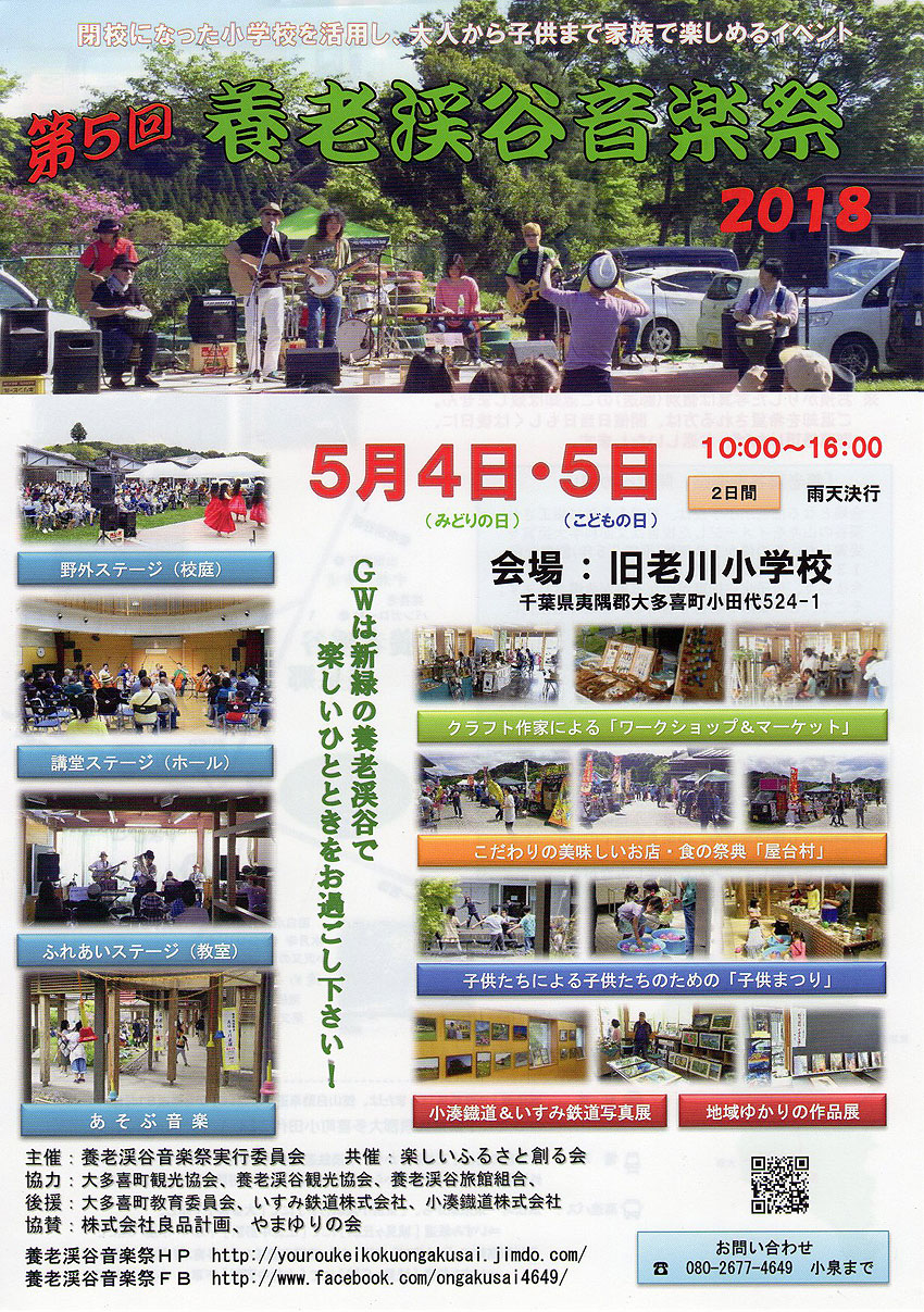 養老渓谷の、旧老川小学校で開催の 「養老渓谷音楽祭2018」 にエントリーしました。 とってもいいお天気! 昭和のヤンキー!! パーマリーゼント! レディースはカーリーヘア! 屋内ステージはバックバンド&ダンサー付き! リバップの皆さん、ありがとうございます。