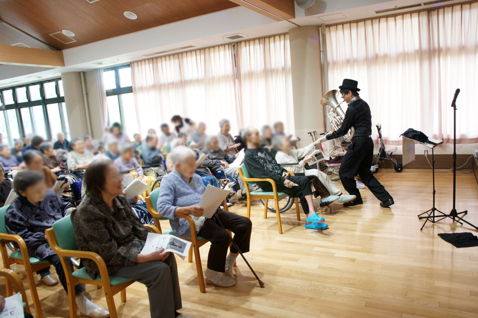 横手市の高齢者施設にお邪魔しました。 前回は工事中だったホールが、とってもキレイになっていました!! ユーフォー仮面と握手すると、10年元気に長生き!! 恒例の「帽子投げ!」 乱れ飛ぶ帽子(笑) ちょっとした手品も... (;^ω^) 皆さま、ありがとうございました。