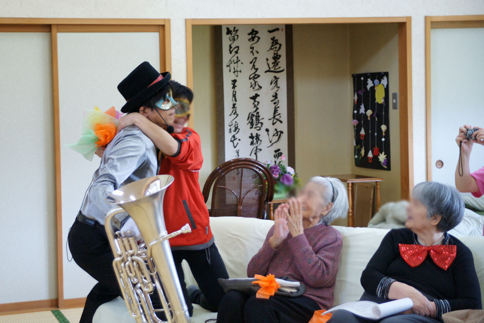 横手市の高齢者施設にお邪魔しました。 4回シリーズの4回目 ↑ ↑ みんなで『昭和時代の暴走族』になりきっています。(≧▽≦) ラブラブ― (≧▽≦) 『わたしも長生きしたーい!』 と、抱きつく職員さん。(≧▽≦) みなさま、ありがとうございました。
