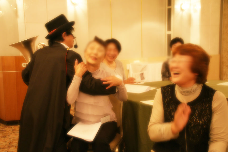 秋田県湯沢市内のホテル宴会場 高校同窓会アトラクションにお声かけいただきました。 伝統ある同窓会の「湯沢支部総会」なんだそうです。 ダンシングタイム!! 一緒に写真で20年元気に長生き! 抱きついて30年元気に長生き! 皆さん「長生き」とかいうお歳でもないでしょうが、笑っていただいていますね。 ありがとうございました。 皆さま、お元気で!! (*^▽^*)