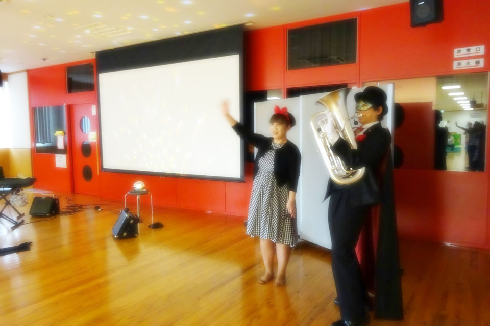 秋田県横手市「YYプラザ」にお邪魔しました。 《ユーフォー仮面の ワイワイふれあいコンサート》 台風の通過により、早朝は風雨 午前中も小雨で、お客さんも最初はまばら... だんだんとお客様も増え、 最初は遠くから見ていた人たちも次第に集まってきましたよ。 聞いていただいたお客様、スタッフの皆様 ありがとうございました。