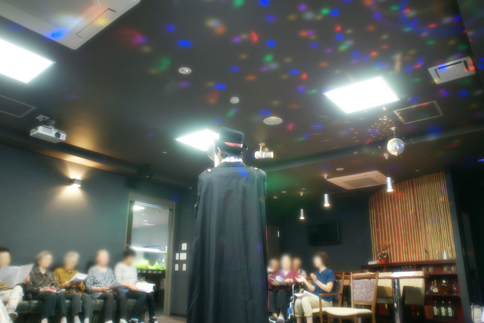 秋田県湯沢市内の高齢者施設にお邪魔しました なにやら高級そうなラウンジ&シアターが会場でした。 人数は少なめでしたが、以前に別の施設でお会いした方がいたり、 マネージャー氏が学生時代にお世話になった先生がいたり... ビックリです! 関係ないけど この写真、 なかなかカッコよくないですか? (*^▽^*) 皆さま、どうもありがとうございました。 ぜひまたお声かけください。 お元気で!!!
