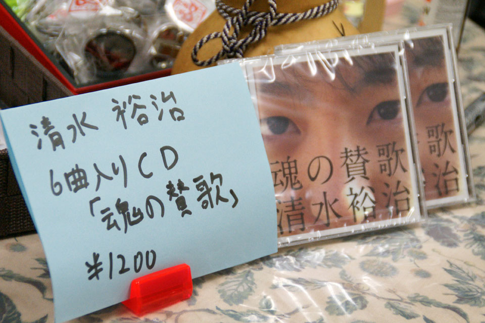 開演前に、大急ぎでCD販売のPOPを書く清水氏(笑)