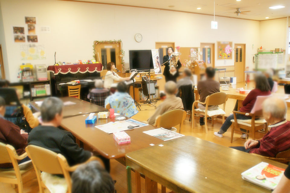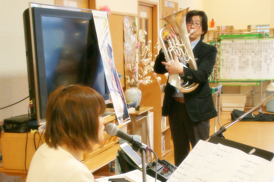 千葉県九十九里町の高齢者施設さんにお邪魔しました。 ...といっても、《ヘバマンズ氏》《マズネマーレ氏》とも都合がつかず マネージャー氏が代理出演する事態となりました。 マネージャー氏もいちおう吹けるんです。(笑) 今回もありがとうございました。 (*^▽^*)