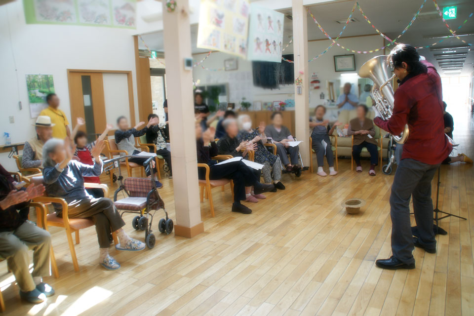 秋田県湯沢市の高齢者施設にお邪魔しました。 初めて訪問する施設さんです。 やっぱり、初めてお会いする皆さんは 最初はまるで《不審者》を見るような眼で見ております。(;^ω^) でも、何曲か一緒に歌っているうちに... ほらほら、とっても楽しそう!! (*^▽^*)