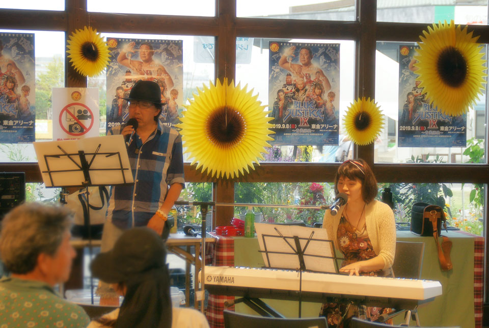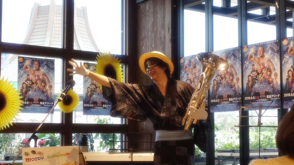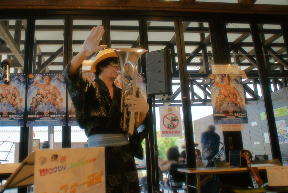 千葉県東金市 道の駅《みのりの郷東金》さんにお邪魔しました。 屋外ウォータースライダーも開催中止になるほどの高気温... (+_+) ユーフォー仮面ショーも屋内開催になりました。 命がけの演奏しなくて済みました。