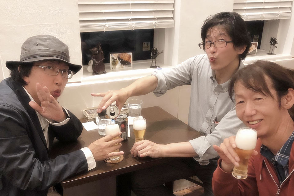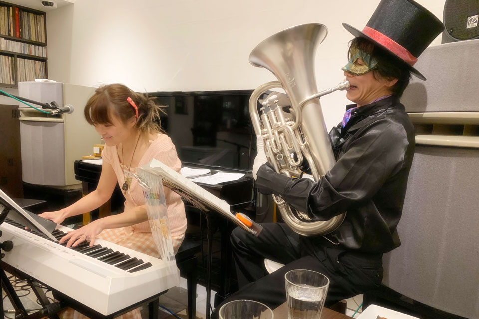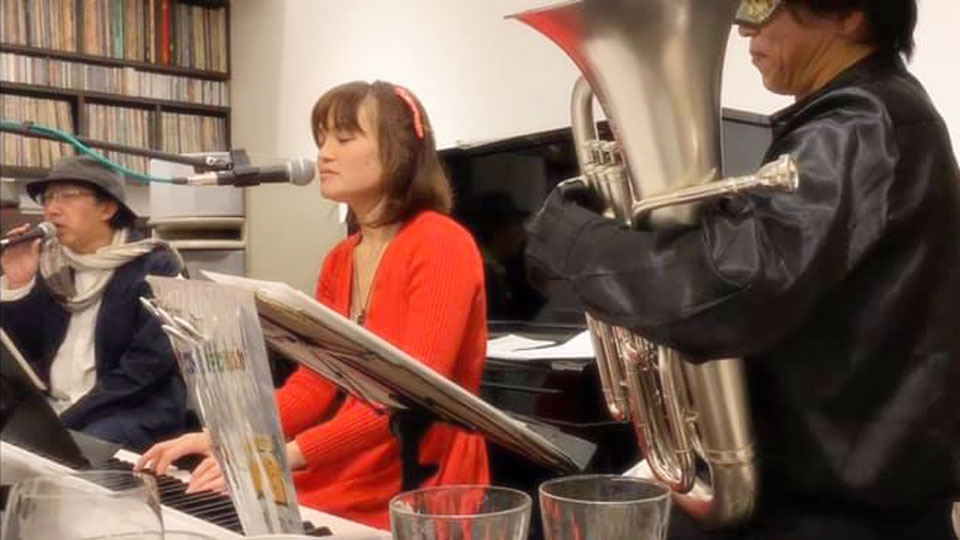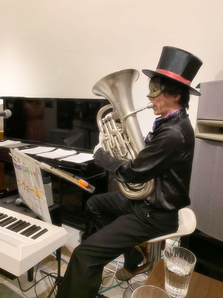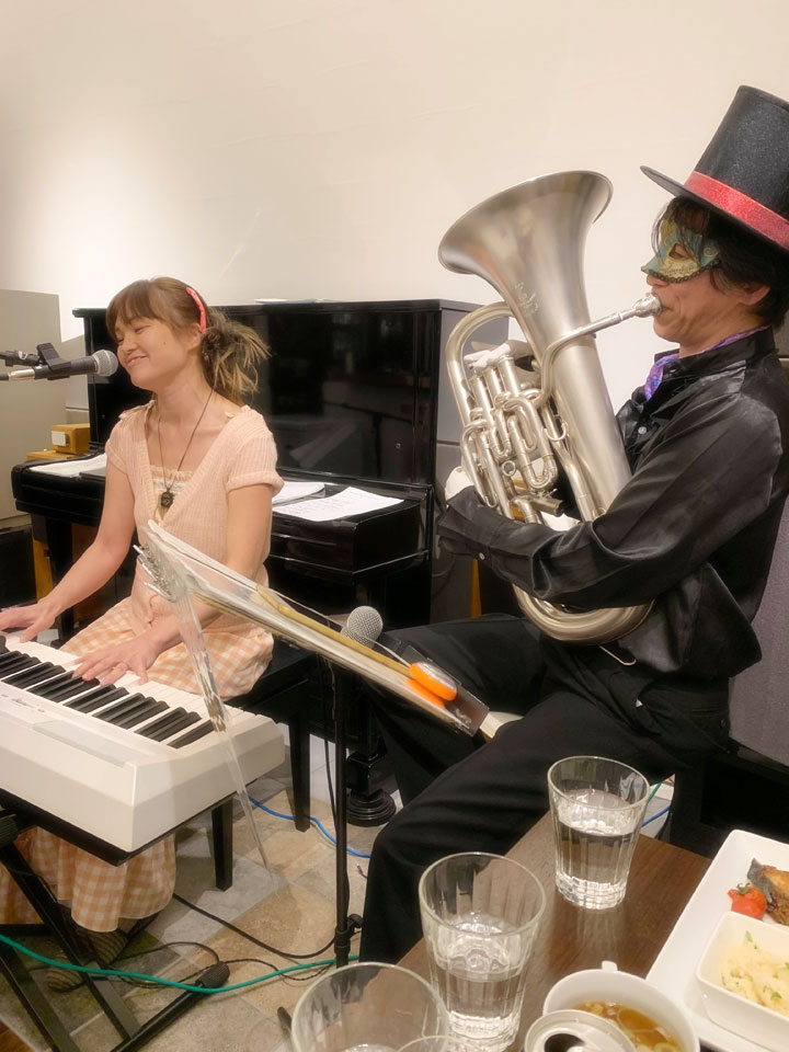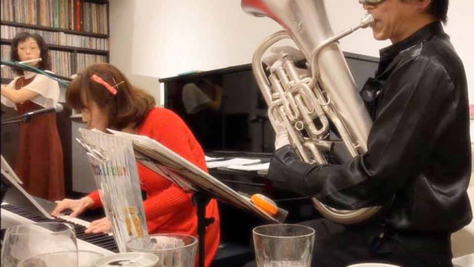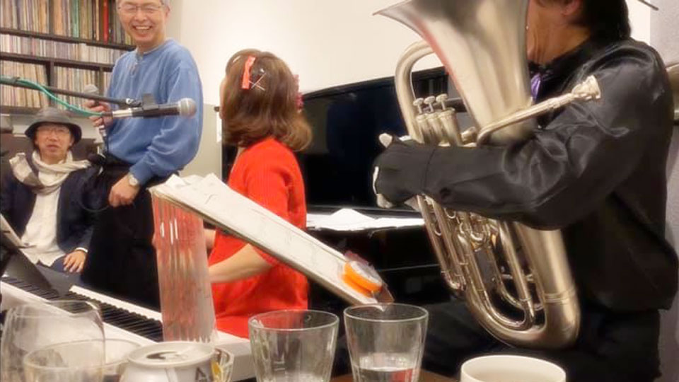 千葉市緑区のカフェ《Relaxin'》さん、open1周年記念パーティにお邪魔しました。 おめでとうございます!! ソロステージ & デュオステージ 《ほっともっと》さん!! 達也&優月 お客様の中でフルート吹ける方はいらっしゃいませんか?? ...のコーナー タイミングよく、フルートデュオ《エスプリ》のにっしーさんが居合わせました。。。(笑) Relaxin' マスターも登場 美声にビックリ!!! お片付けが終わったマネージャーズ なぜか全員「小指」が立っている(笑)