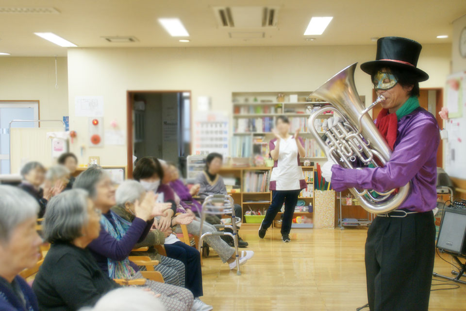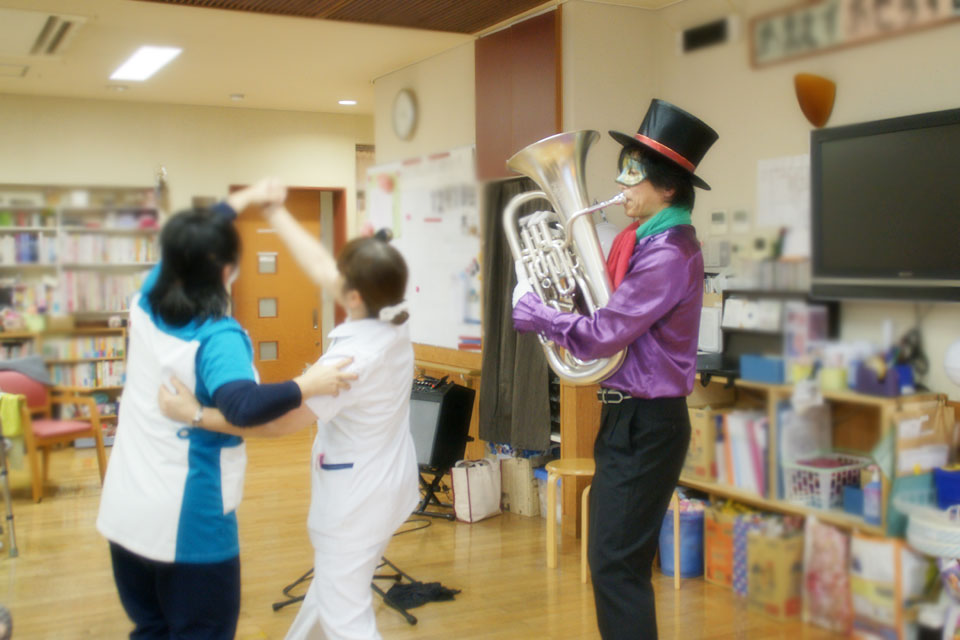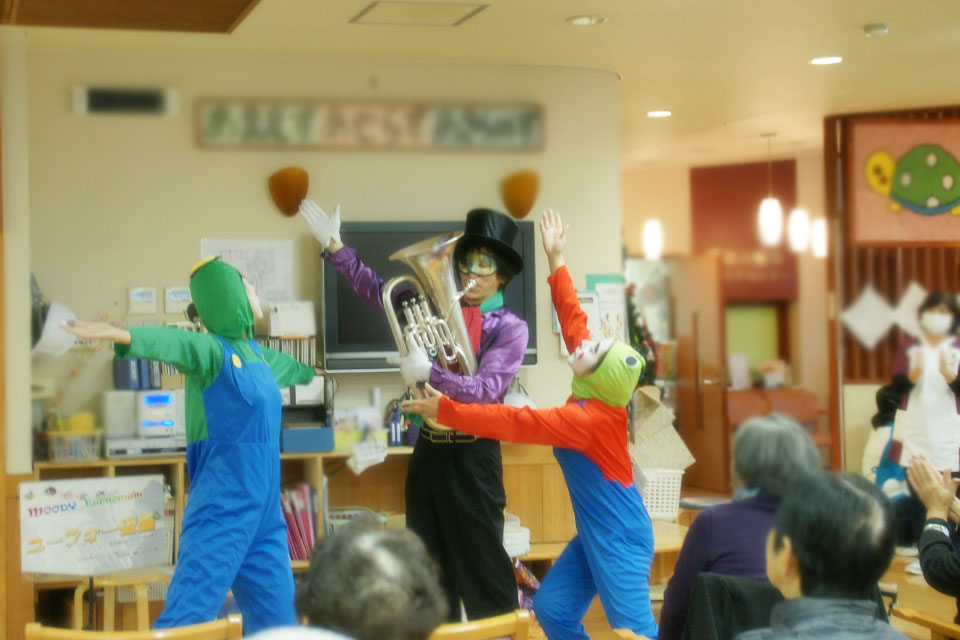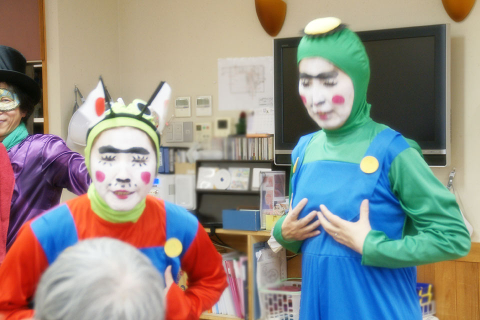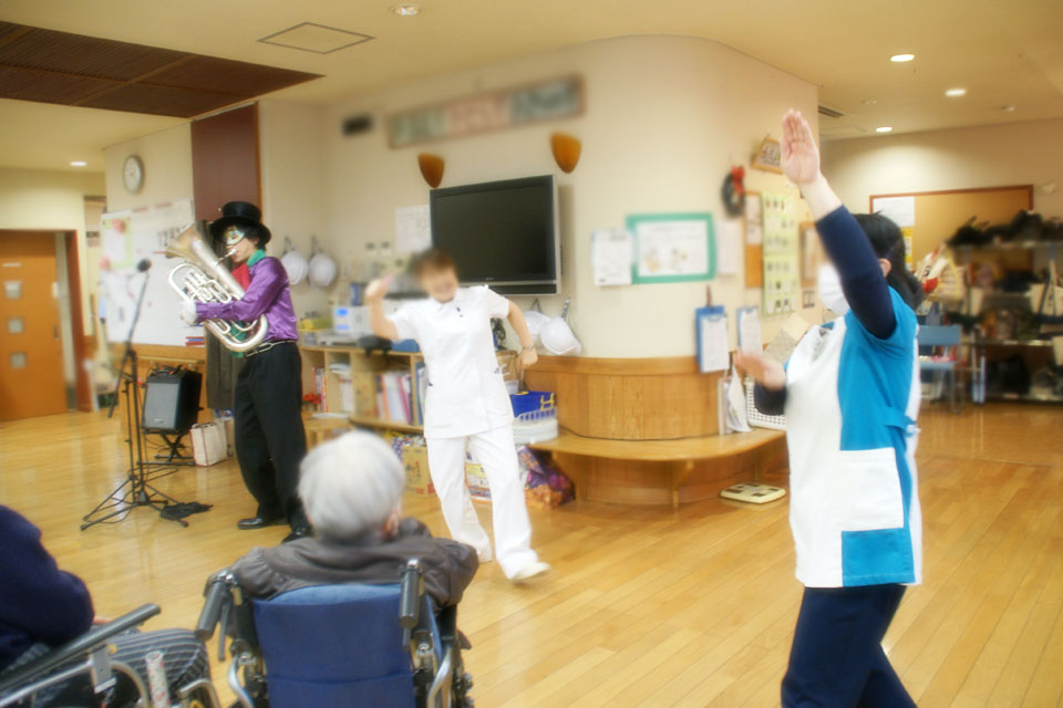 千葉県八街市の高齢者施設にお邪魔しました。 職員さんも浮かれて踊りだしちゃいますよ。 楽しそうな お姉さまがた スペシャルゲスト! いつもの《巨乳シスターズ》かと思っていたら、今回は《貧乳シスターズ》が登場(笑) 貧乳でも、パフォーマンスのパワーはスゴイ!! ユーフォー仮面も喰われ気味。。。 今回も大騒ぎのステージになりました。 ありがとうございます。