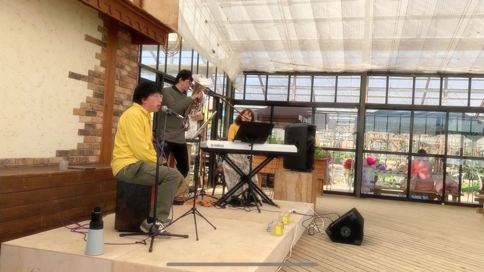 マネージャー氏、大多喜町の《大多喜ハーブガーデン》にお邪魔しました。 ...といっても、本来はご挨拶(営業)と音響のお手伝い 本来のステージはこちら 《ほっともっと》さん 顔を出したらタダでは帰してもらえないのがこの世界(笑) 何曲か演奏させていただいたようです。 オムライス!! ハーブティ飲み放題!!