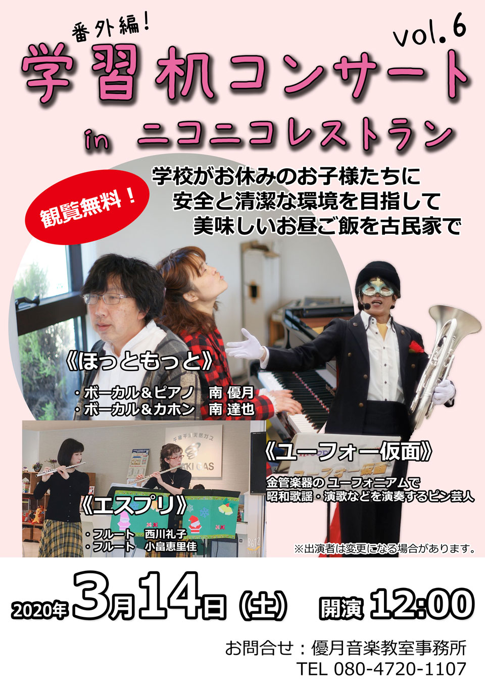 学校が急に休みになっちゃって、退屈しているであろう子どもたちに音楽とお食事のプレゼント (お食事代金のみご負担ください。) ...今回はビミョーな情勢の真っただ中なので「番外編」 ご無理のない範囲でお楽しみいただければと思います。
