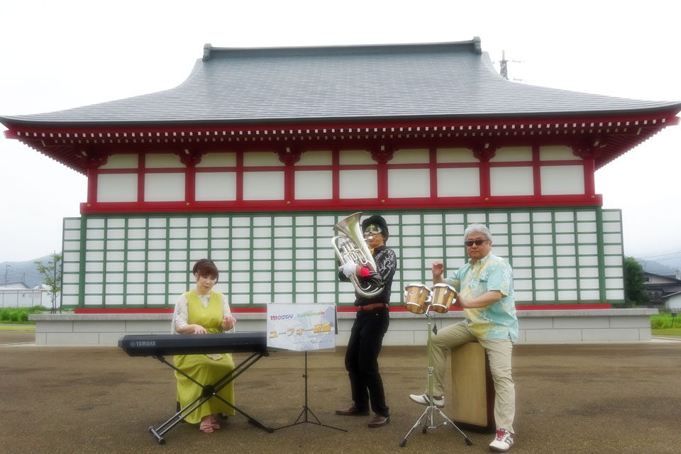 湯沢市《小町の郷公園》にて、秋田ユーフォー仮面一座・動画撮影会を開催 せっかくなので《小町舞台》を使って演奏~録画しました。 《小町舞台》は背景としてもとってもステキ!! 秋田から飛び入り参加のTuba夫妻(笑) ありがとうございます。 久々の一座メンバー集合! 打ち上げは、カフェ《TAKAIWA》さんで ランチ、美味しかった。