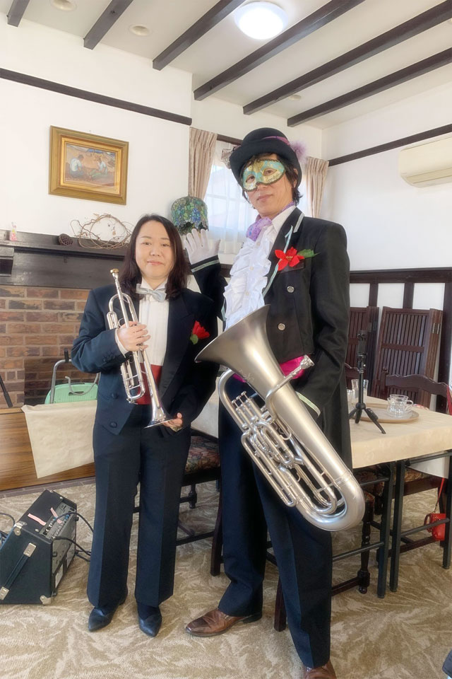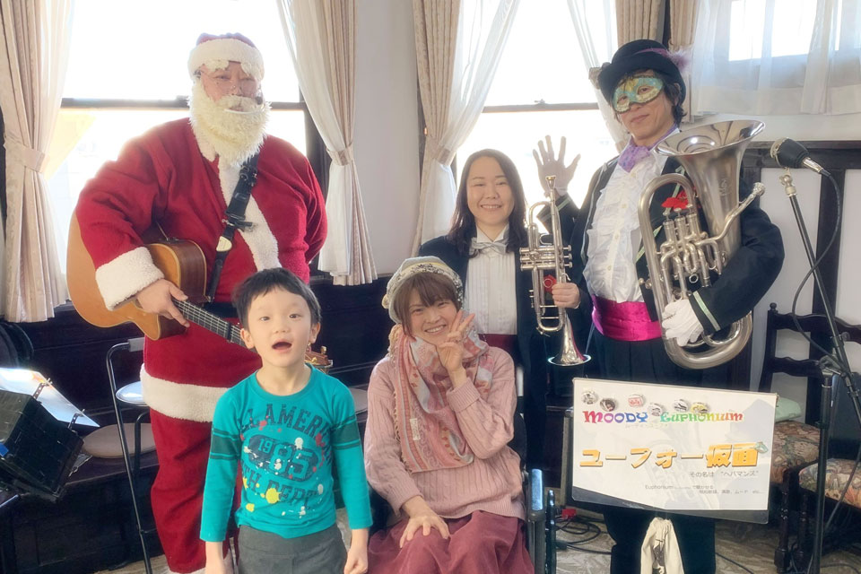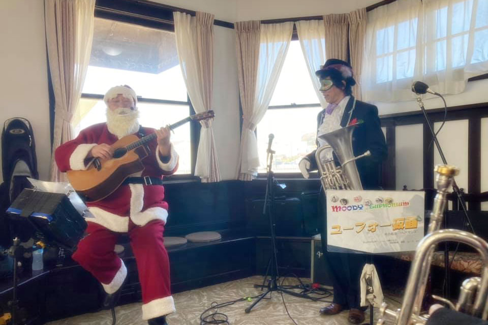 大網白里市のカフェ《メーヤー館》の月イチイベント 《優月・昼下がりのコンサート》 ピアニカコンビ らっぱコンビ 遅れてきたサンタさん(笑) 番外編 ダンサーも特別出演(笑) 大網白里市のカフェ《メーヤー館》の月イチイベント 《優月・昼下がりのコンサート》