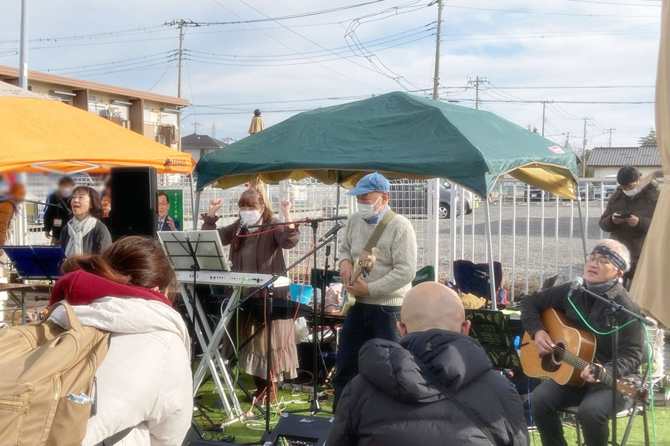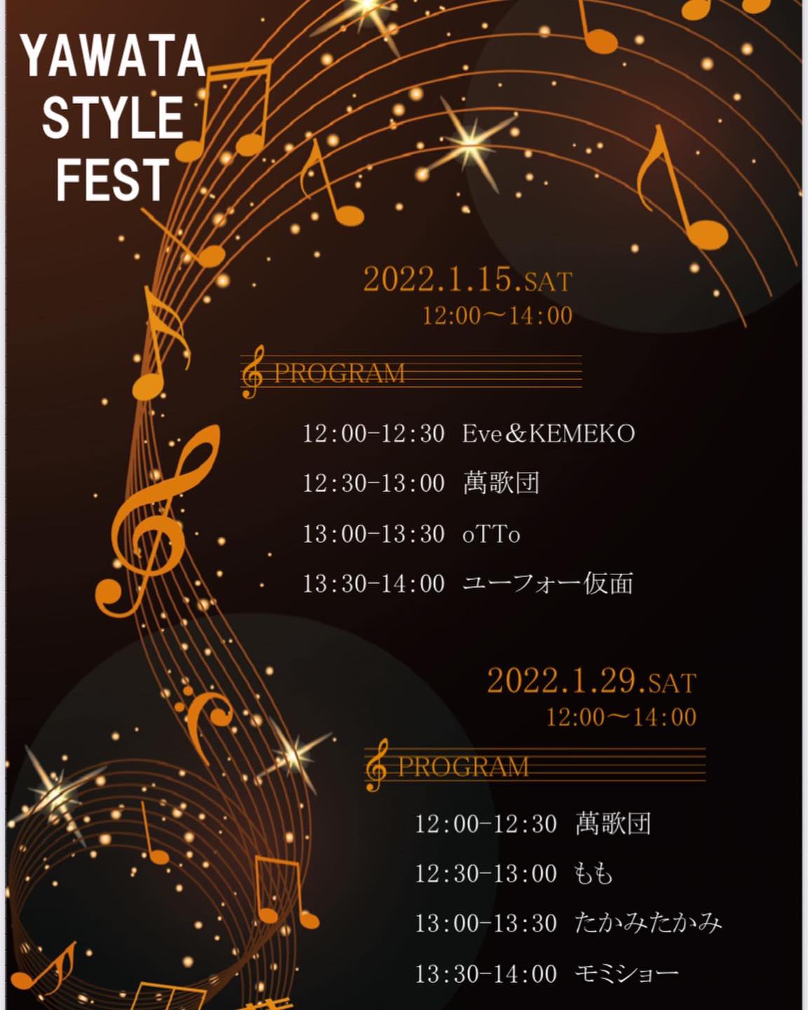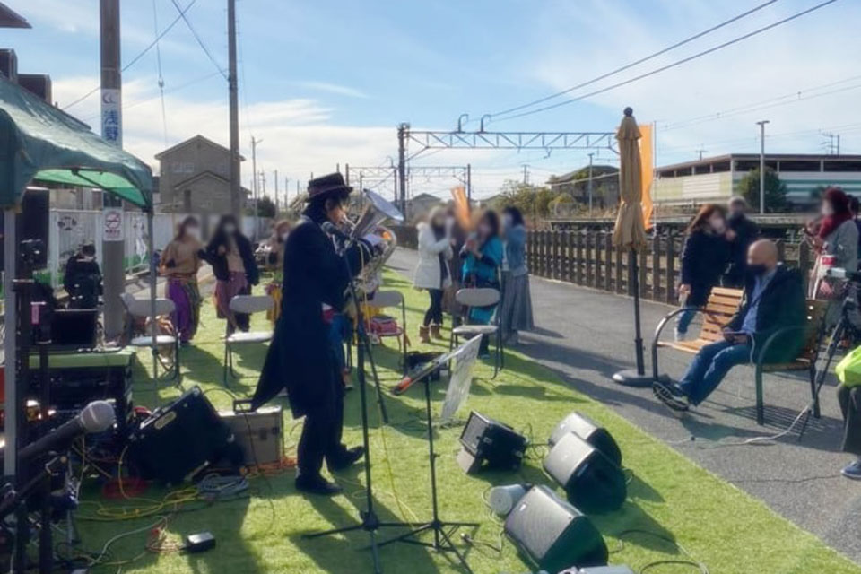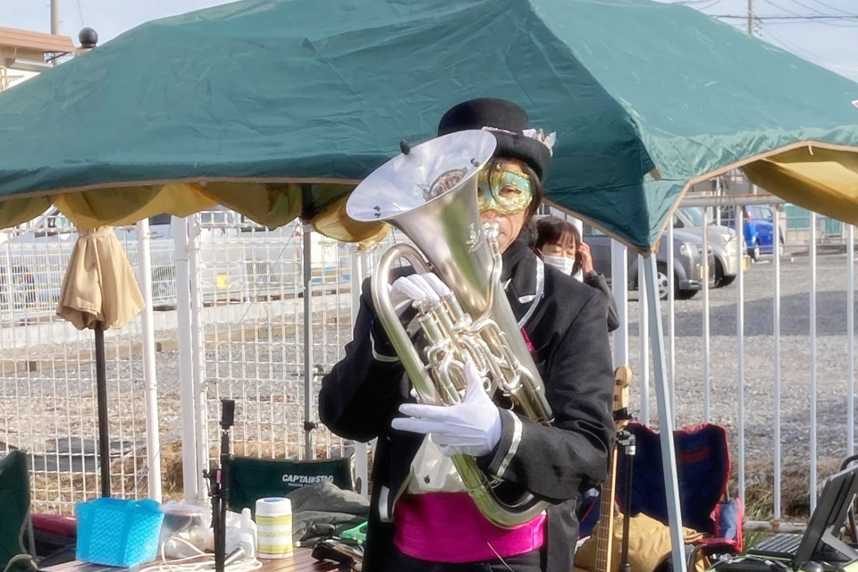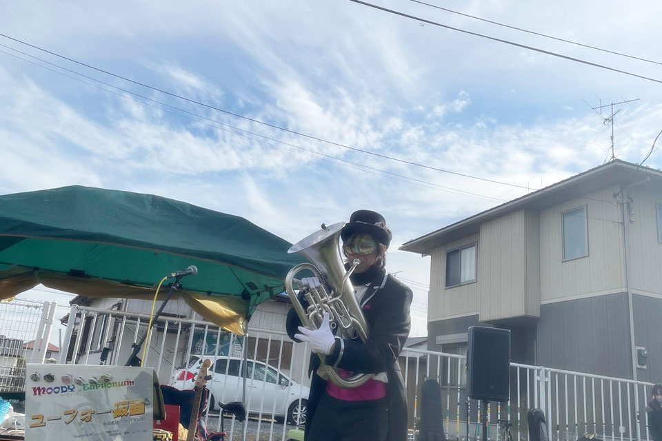 市原市 JR八幡宿駅前で開催 《YAWATA STYLE FEST》 演奏ステージに参加しました。 今日は4組が演奏 《eve & KEMEKO》さん ごめんなさい。画像未入手 m(__)m 《萬歌団》さん 《oTTo》さん そして《ユーフォー仮面》 吹いてないと楽器が冷えるので、MC無しで連続演奏! 前奏とか間奏とか、テキトーなときにちょっとトークを入れました。(笑) バックダンサー付き? ...ってくらいに みんな踊っておりました。(*^▽^*)