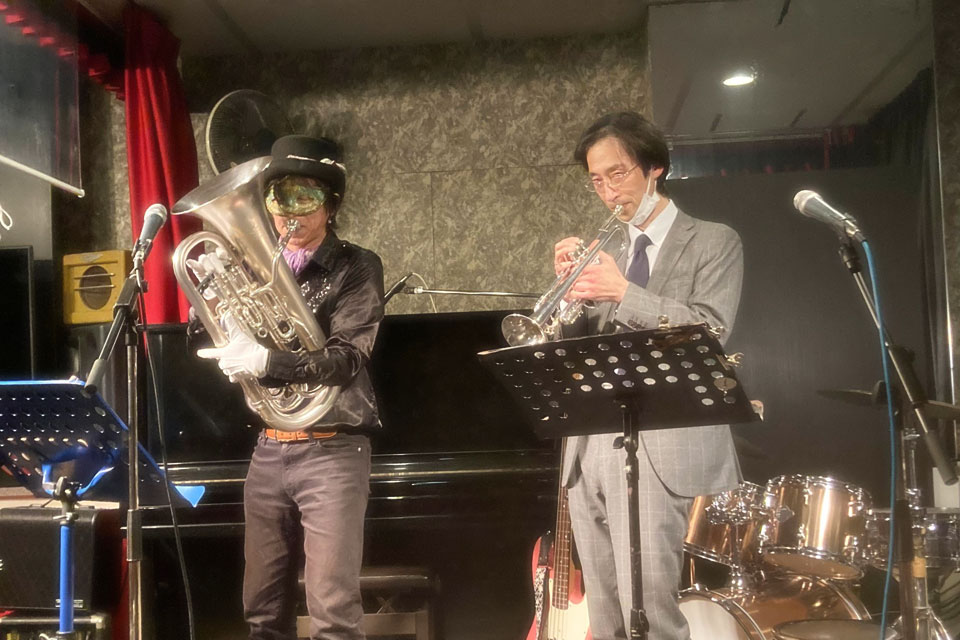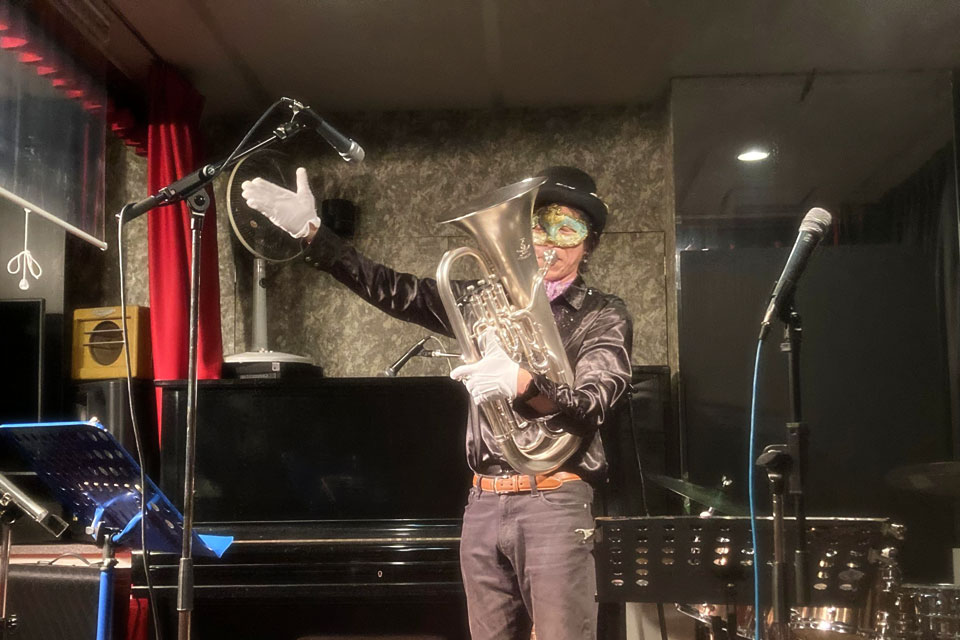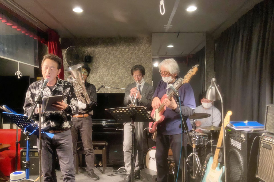 千葉市中央区の《ライブスペース ライト》さんにお邪魔しました。 主役の《イク姐さん》のバンド 《イク’sドリームバンド》にちょっとだけ混ぜていただく予定でしたが 参加できないメンバーが出てしまって今日はおあずけ... ほぼ、オープンマイクのようなイベントになりました。 テキトーにソロでやったり、デュオでやったり、バックに入ったり... いろんなことが経験できます。 応援に来てくれたお友達のマリーさんが大人気でひっぱりだこ!! このデュオもなかなかイケるんじゃない? この後、ユーフォー仮面とも「歌デュオ」披露したんですが、画像未入手... 名物のハンバーグ、美味しかった!