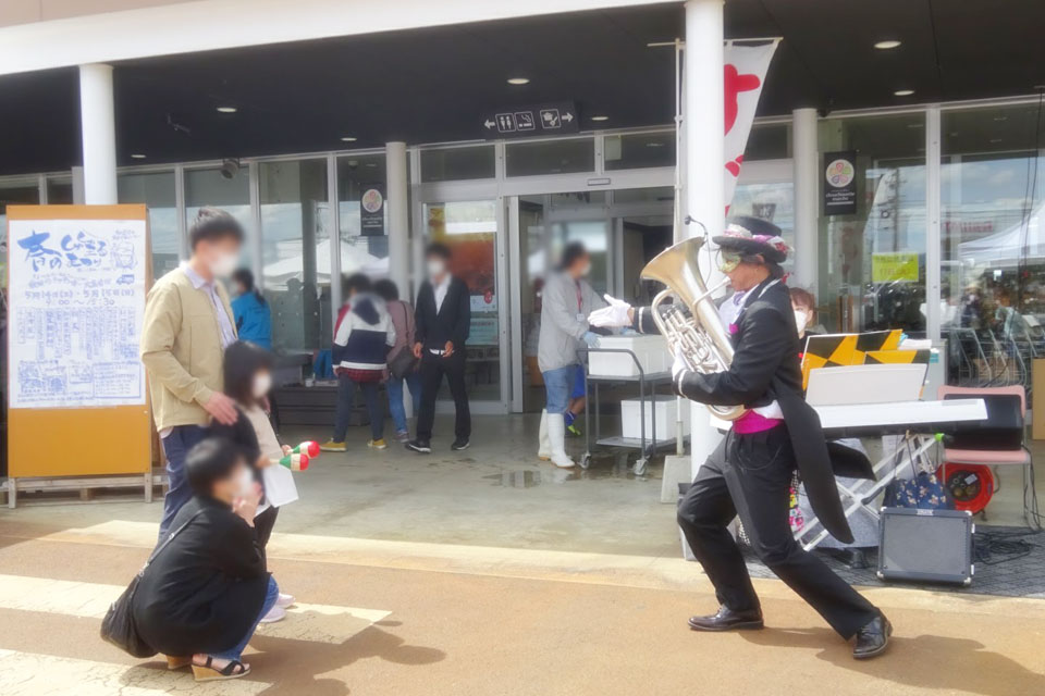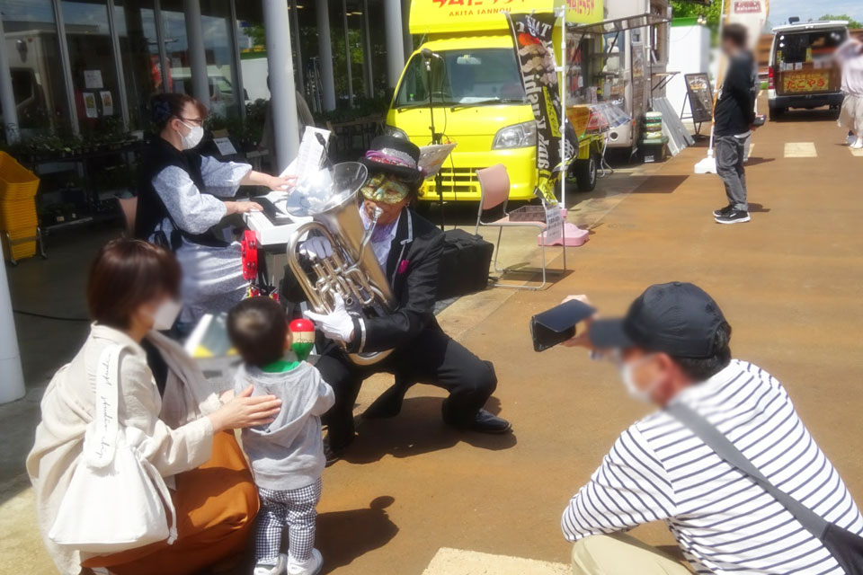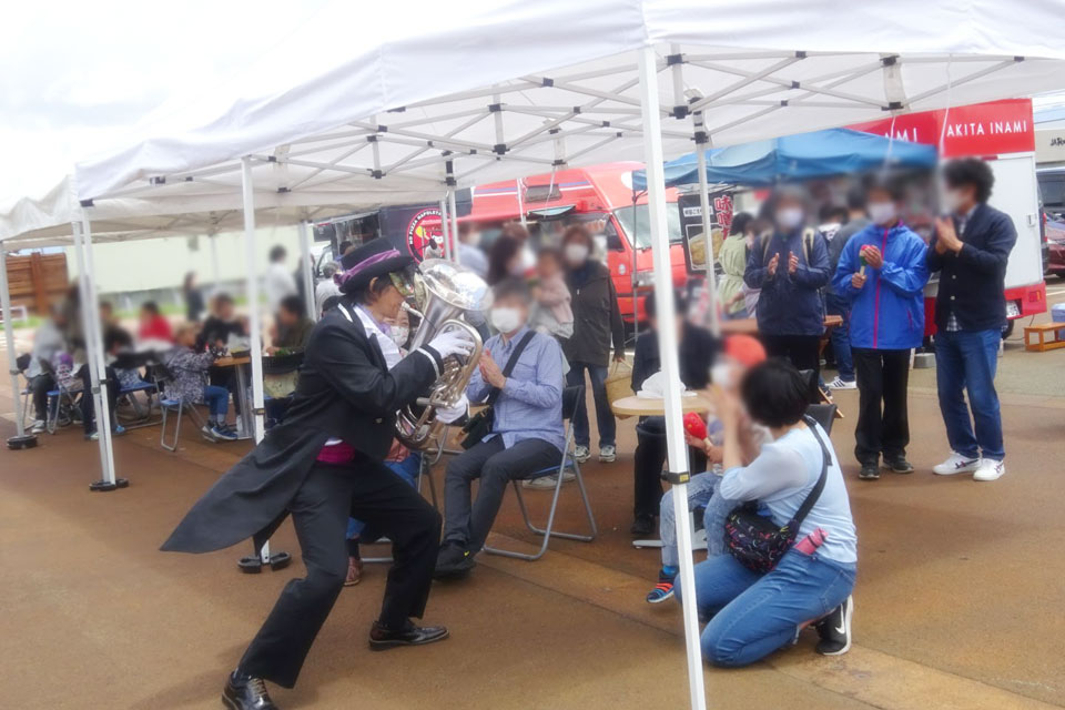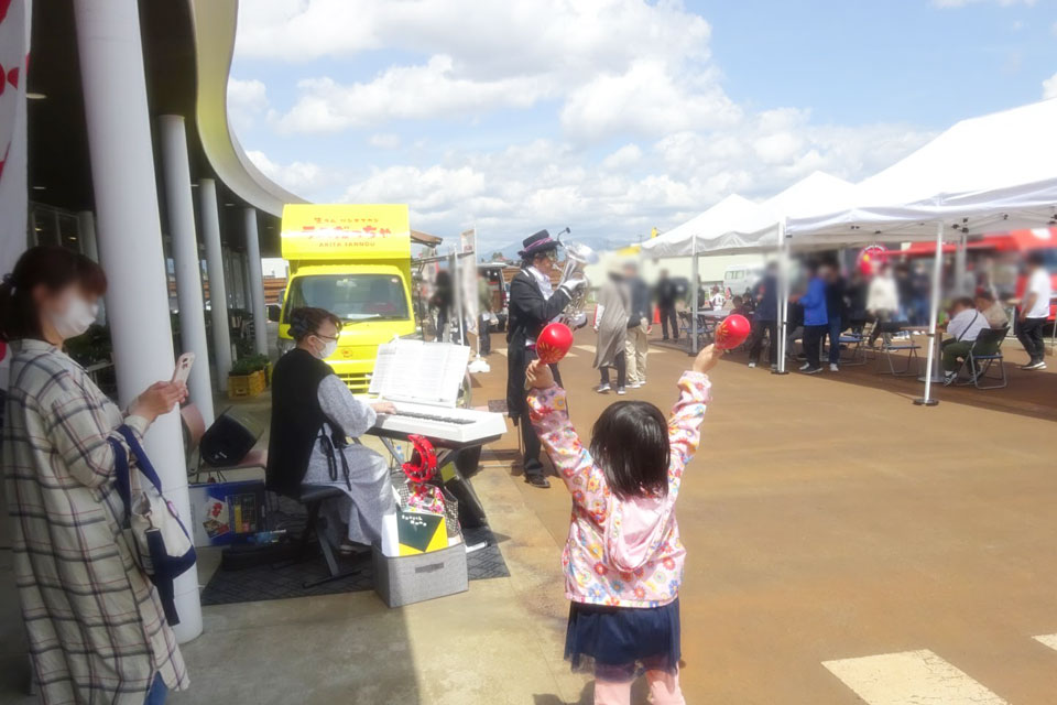 大仙市の農産物直売所《しゅしゅえっとまるしぇ》さん 「春のしゅしゅまるまつり」に出没しました。 キッチンカーも大集合! そこらじゅうが美味しそうな匂いでいっぱい! ちょっと風が強くて大変でした。。。 会場のちびっ子ちゃんたちも「鳴り物」でパフォーマンスに参加! 応援ありがとうございます! キッチンカーの食べ物もいただきましたが、 最後はマンゴーソフトで。。。 (´▽`*)