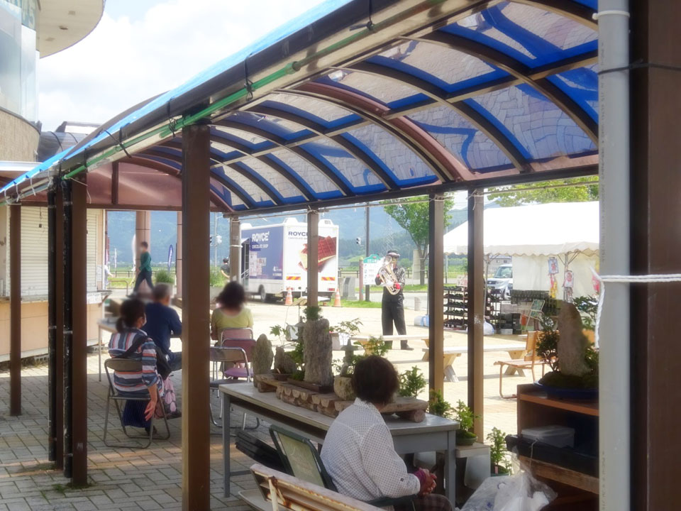 湯沢市《道の駅おがち 小町の郷》さんにお邪魔しました。 ほぼ告知なしの開催 「ゲリラライブ」改め、「サプライズライブ」と呼ぶことにしました。 日なたは暑くて、お客さまはテントや屋根の下で見物 施設で用意していただいた見物席はガラガラです...💦 お客さまのタンバリン隊、ありがとうございます! あまりの暑さに『雨でも降ってくれないかなー』と ♪雨あめふれふれ もっとふれ~♪ この後、ホントに雨が降ってきましたよ。 ご見物、ありがとうございました。 (´▽`*)