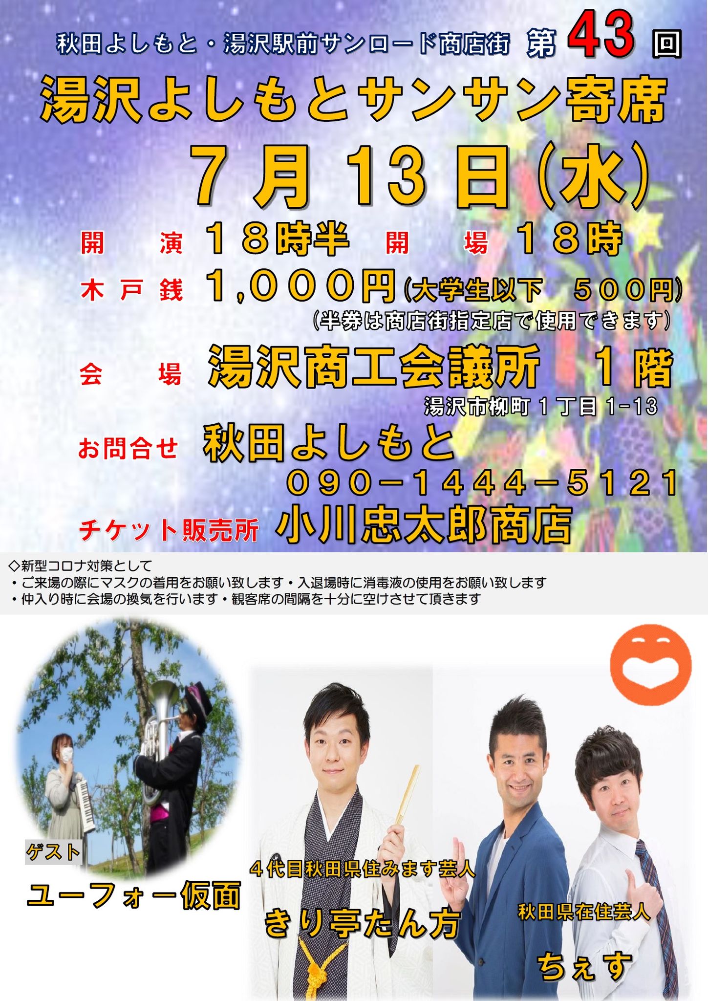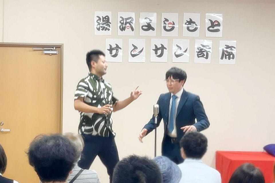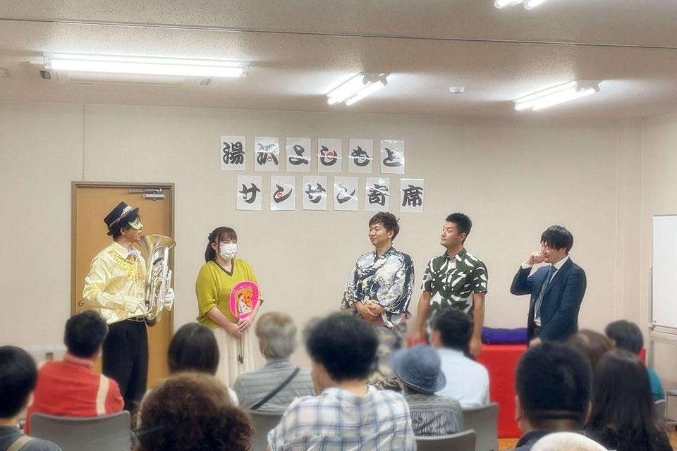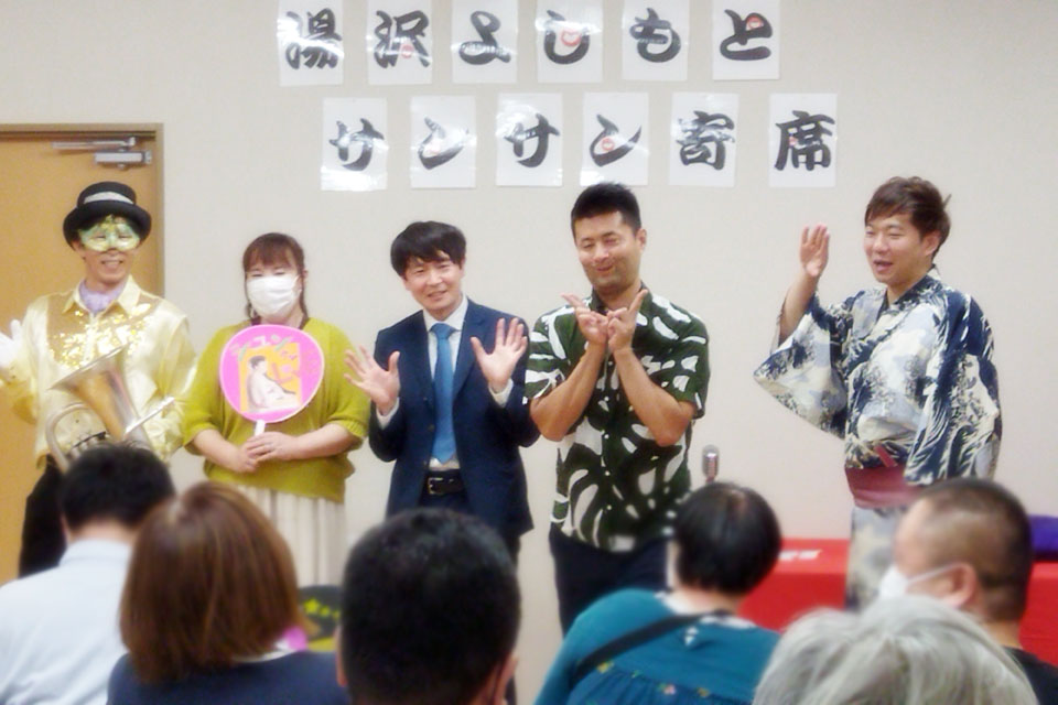 湯沢商工会議所で開催の 《湯沢よしもとサンサン寄席》 前座で出演しました。 なんと、出囃子も弾かせていただきました。 (出囃子:登場の音楽) 《きり亭たん方》 さん 《ちぇす》 さん 出演者全員によるトークショー?? 記念撮影 ありがとうございました! (*^▽^*)