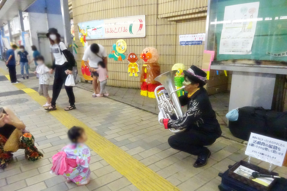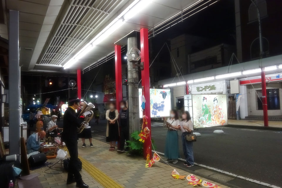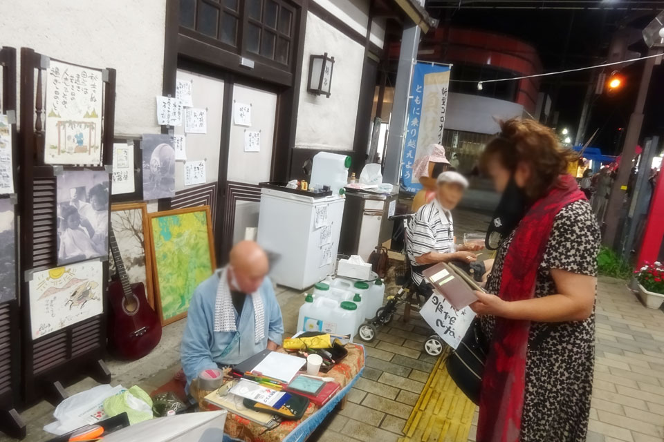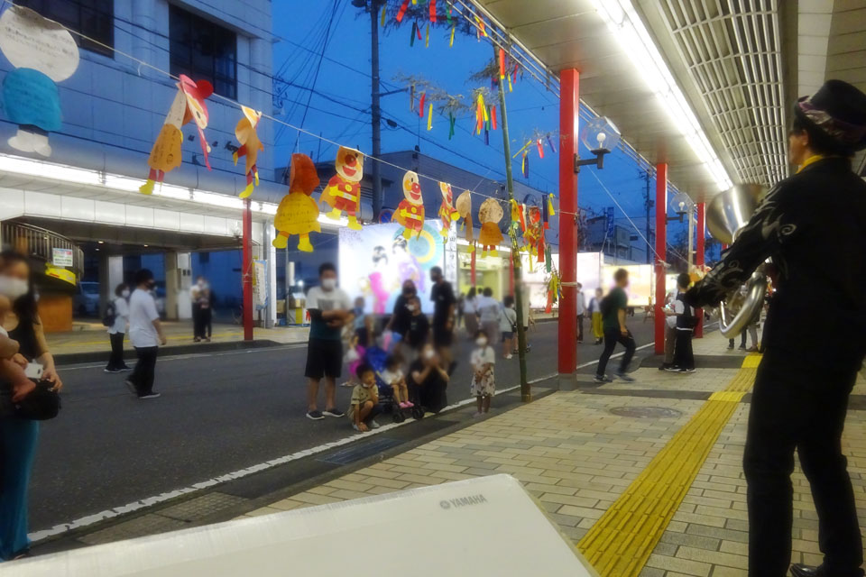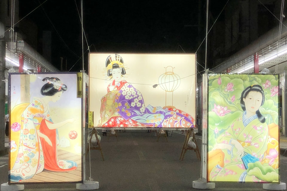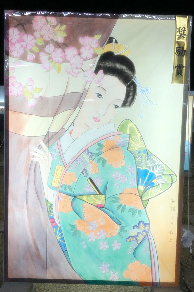 こんな感じ 「書」と「イラスト」、お客さまに合わせて文言や絵を書いていきます。 ...しかも、無料ですって! たくさんのお客さまに足を止めていただきました。 ありがとうございます。 旧郡会議事堂記念館 プロジェクション・マッピング 絵どうろう こちらはユーフォー仮面一座のメンバー「アッちゃん」の作品 数々の絵どうろうが夜の街を彩ります。 写真はこれしか撮れなかった... お声かけ、ありがとうございました。