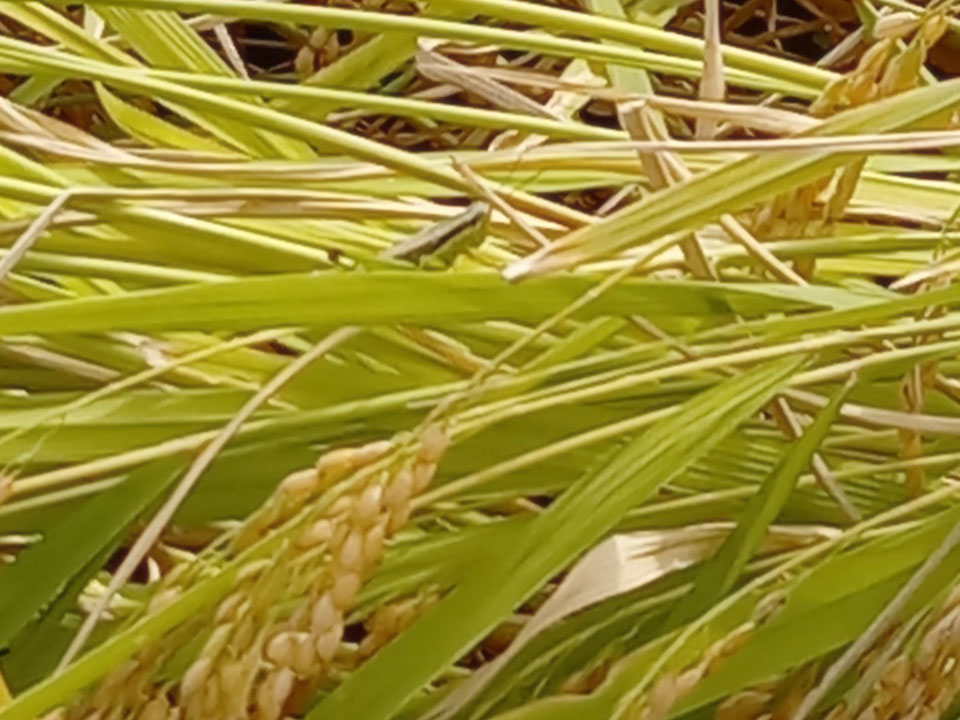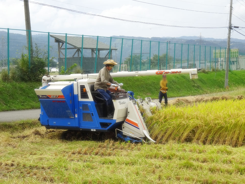稲刈り 2日目 稲がけっこうハデに倒れてるところが多くて 思いのほか時間がかかりました... ハタギ(イナゴ)発見!! 昔は袋にいっぱい捕まえられるくらいたくさんいたんですけどね... (各家庭で佃煮にしてた。) 今年の借り入れはひととおり終了! 乾燥~調製~出荷~機械の後片付け... と続きます。