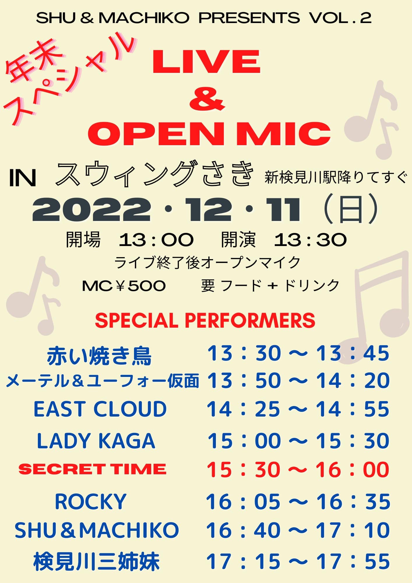 SHU & MACHIKO さん企画のイベント 【年末スペシャル LIVE & OPENMIC】