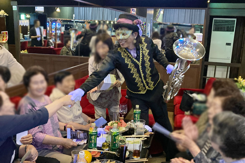 同窓会のアトラクションにお声かけいただきました。 地元の中学校 昭和33年度卒業生の皆さんです。 踊りだす方々続出! 皆さん、おしゃれー ユーフォー仮面効果に追加リクエストいただきました。 『10年元気に長生きしなくていいから、10年前に戻らせてくれ!』 う~む、取り入れるべく修行してみます。 ありがとうございました。 終了後は、近所の道の駅「端縫いの郷」さんで...