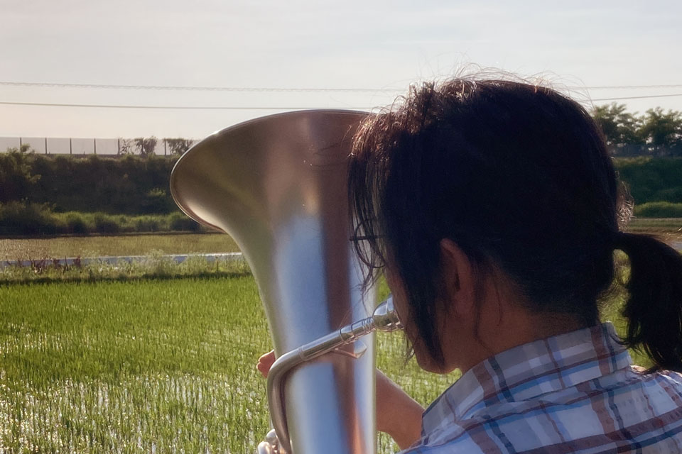 「ユーフォー仮面田んぼ」 音の肥料作戦