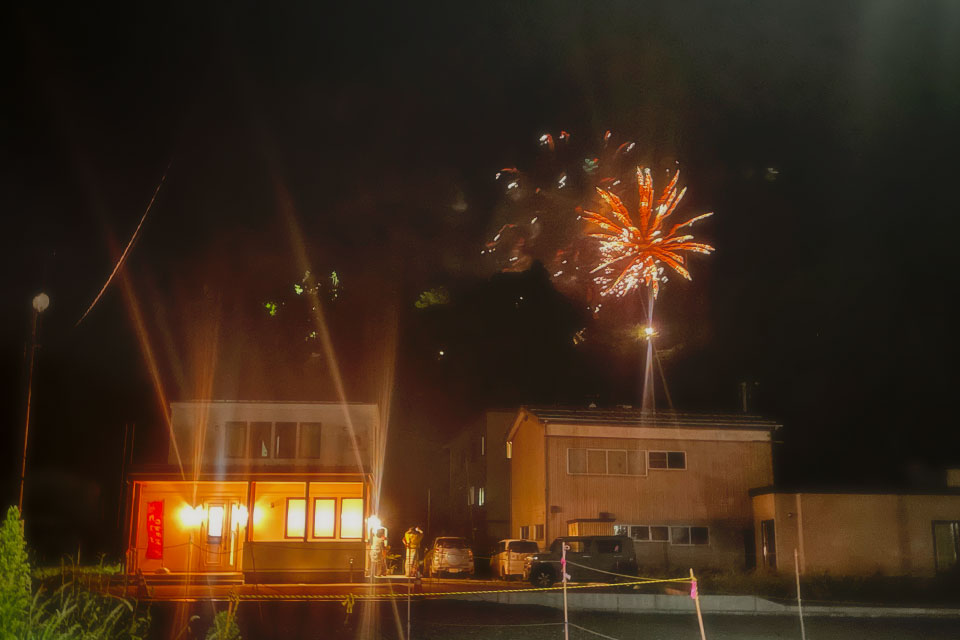 裏手の山からは花火が!!