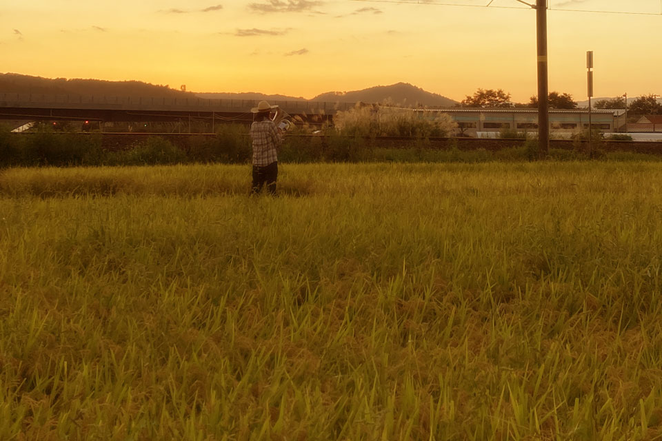 「ユーフォー仮面田んぼ」 音の肥料作戦