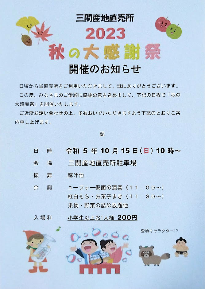 2023.10.15(日) 湯沢市「三関産地直売所」 2023 秋の大収穫祭